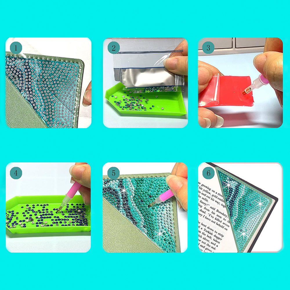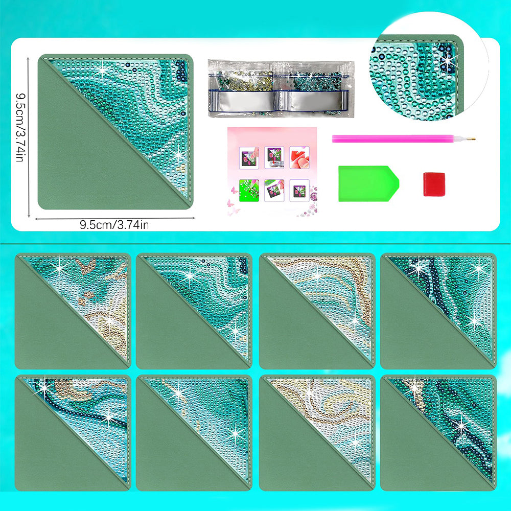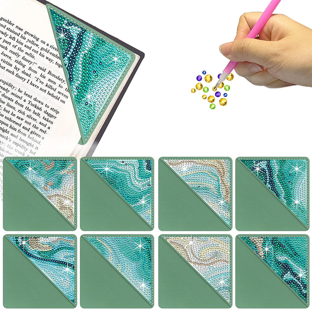 8Pcs Abstract Sea PU Corner Cover Bookmark Diamond Painting Kits