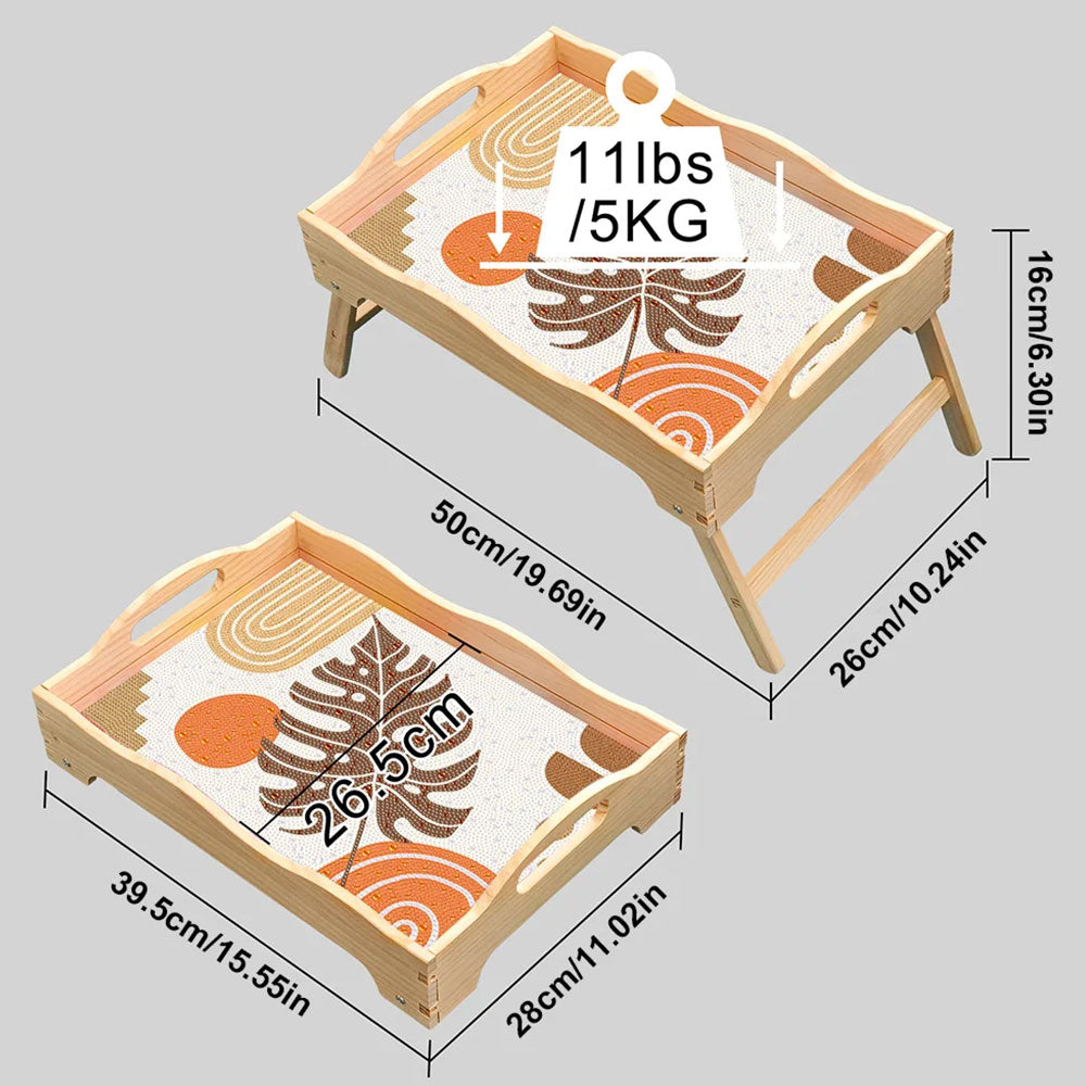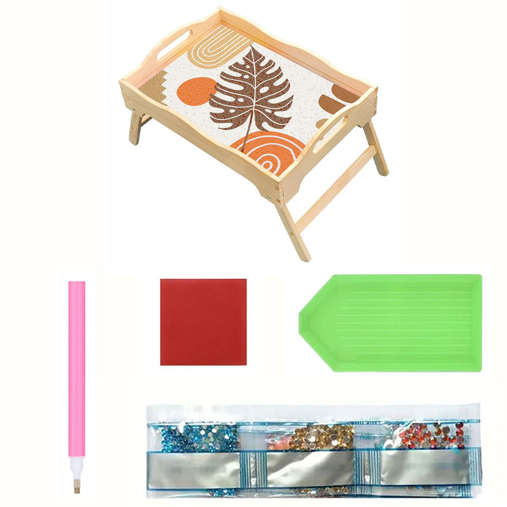 Abstract Autumn Leaf Wooden Dining Table Tray with Handle Diamond Painting