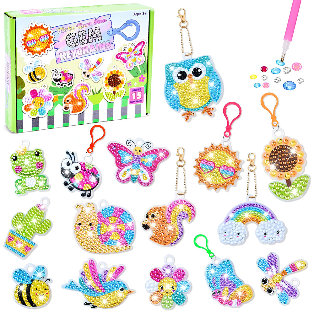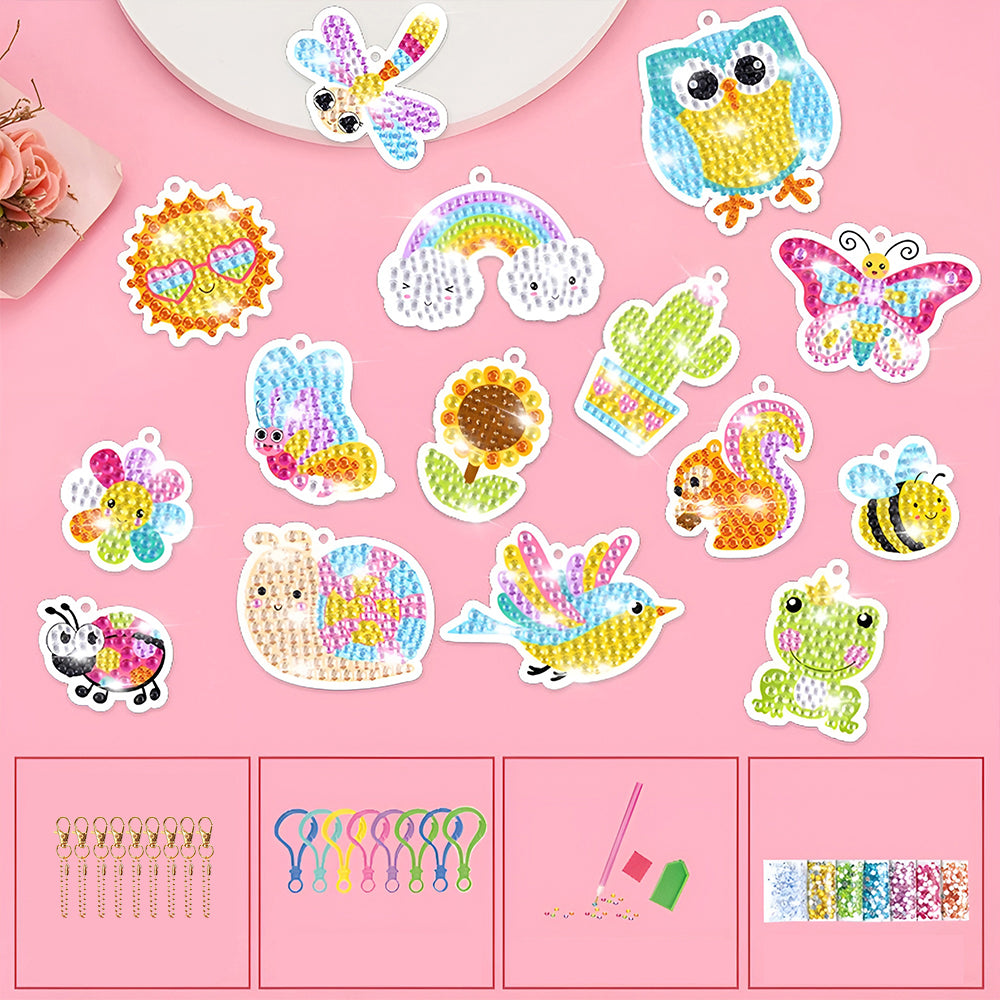 15Pcs The World of Insects and Flowers Acrylic Double Side Keychain Diamond Painting