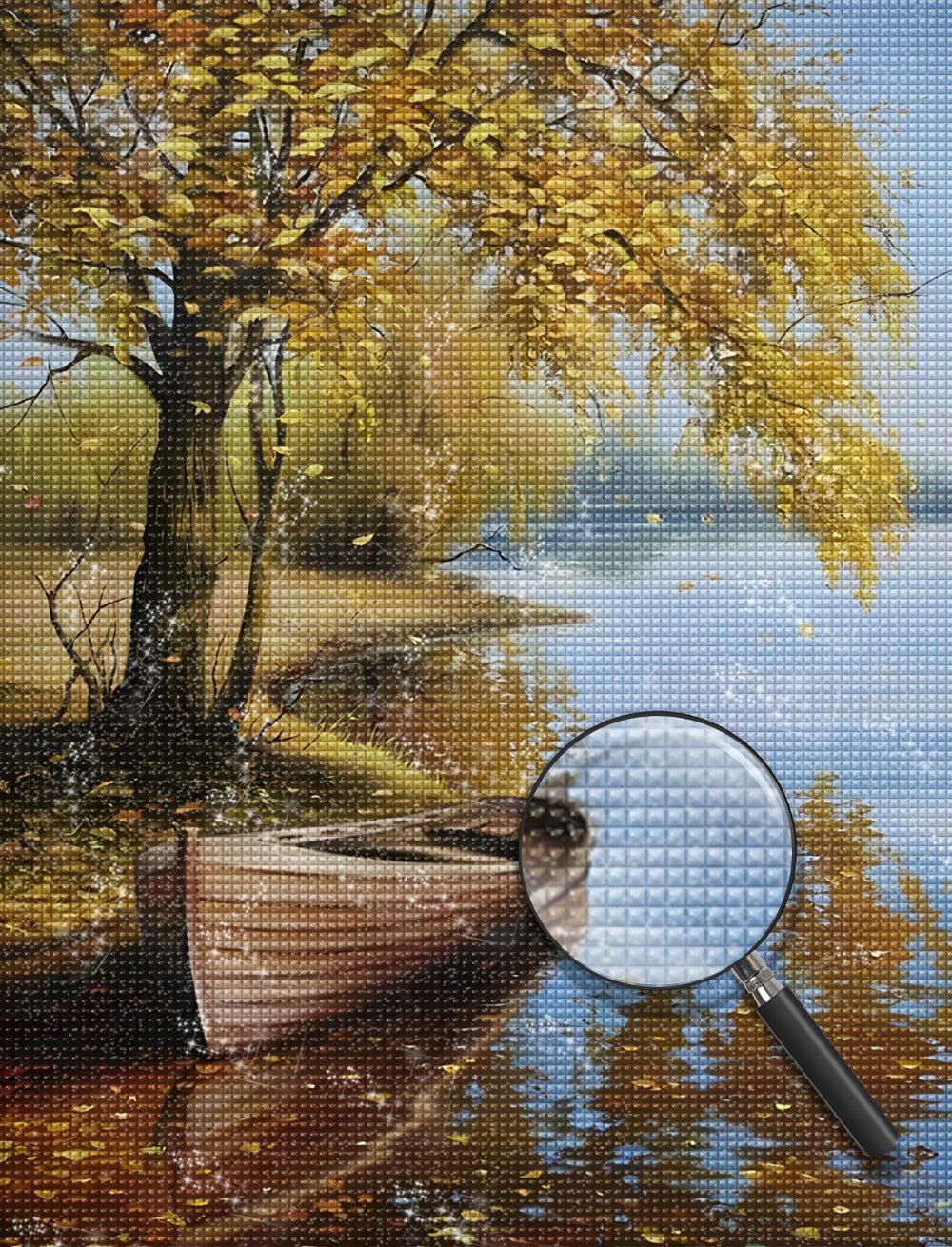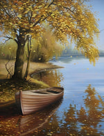 Winter Tree and Wooden Boat Diamond Painting