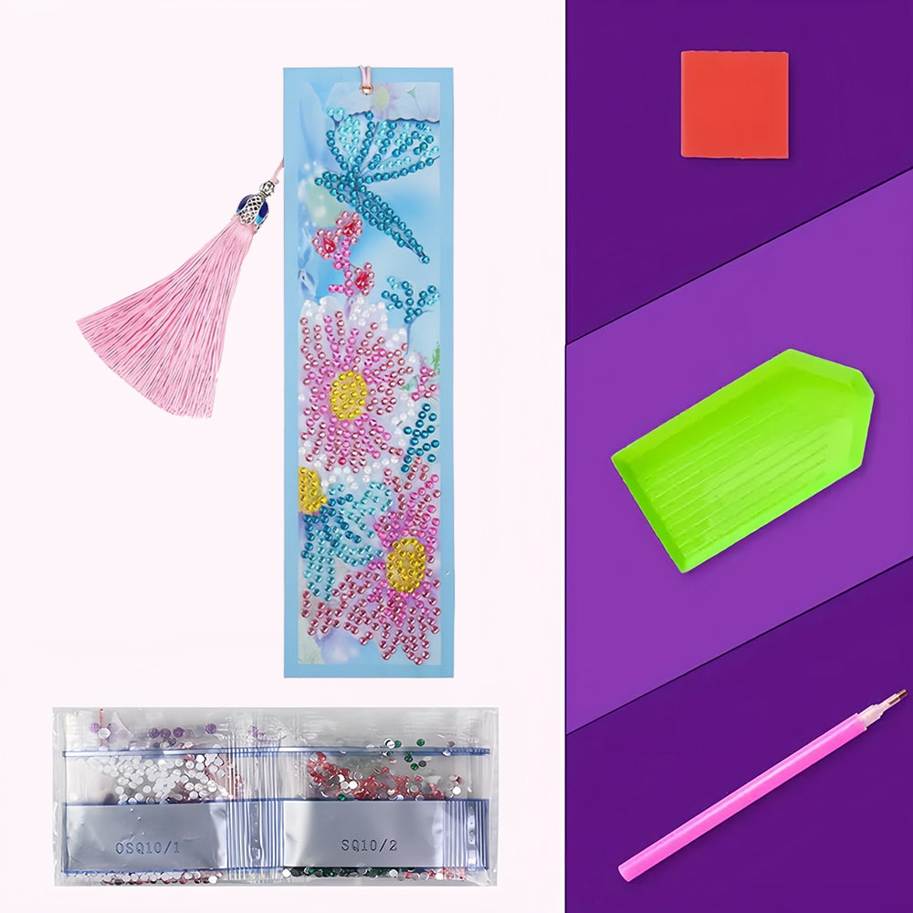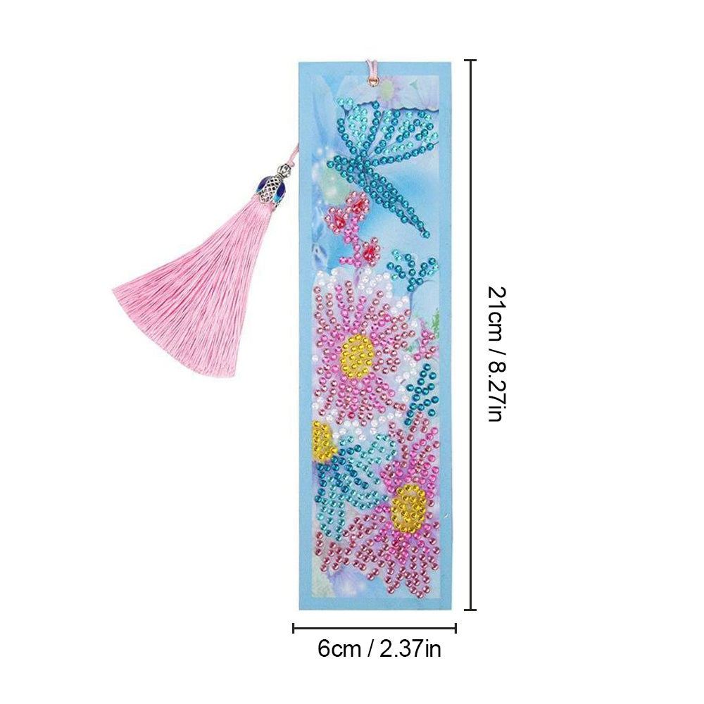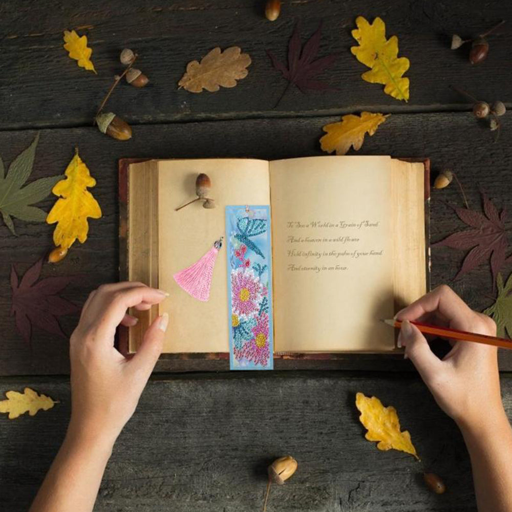 Pink Flower and Green Butterfly Leather Bookmark Diamond Painting Kits