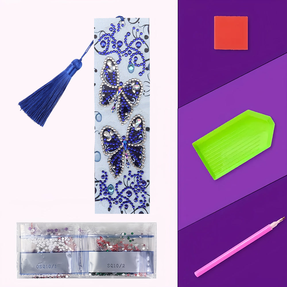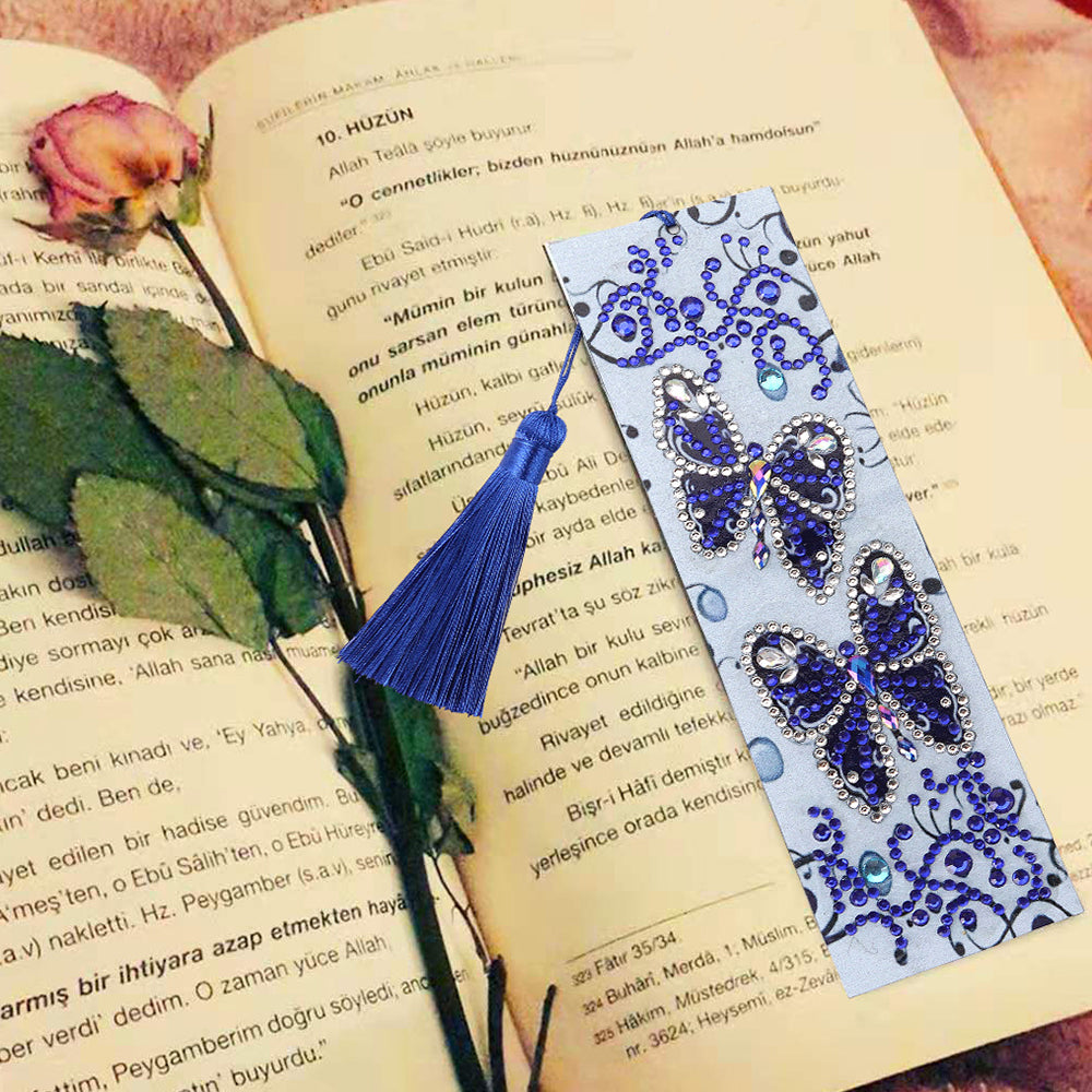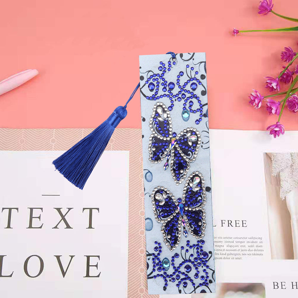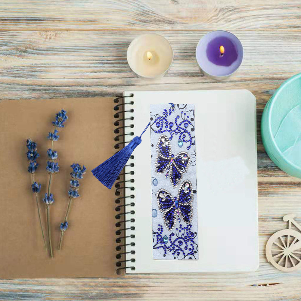 Two Blue Butterflies Leather Bookmark Diamond Painting Kits