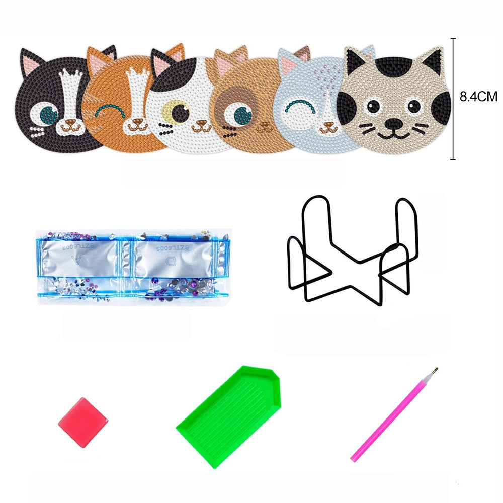Lovely Cats Diamond Painting Coasters 6Pcs