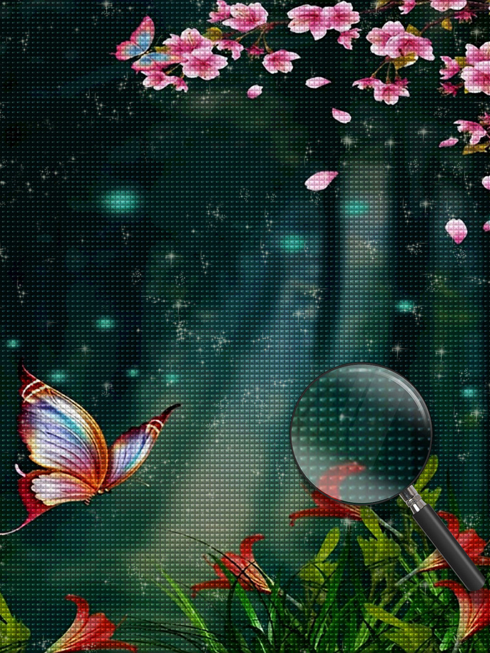 Flying Butterfly and Pink and Red Flowers Diamond Painting