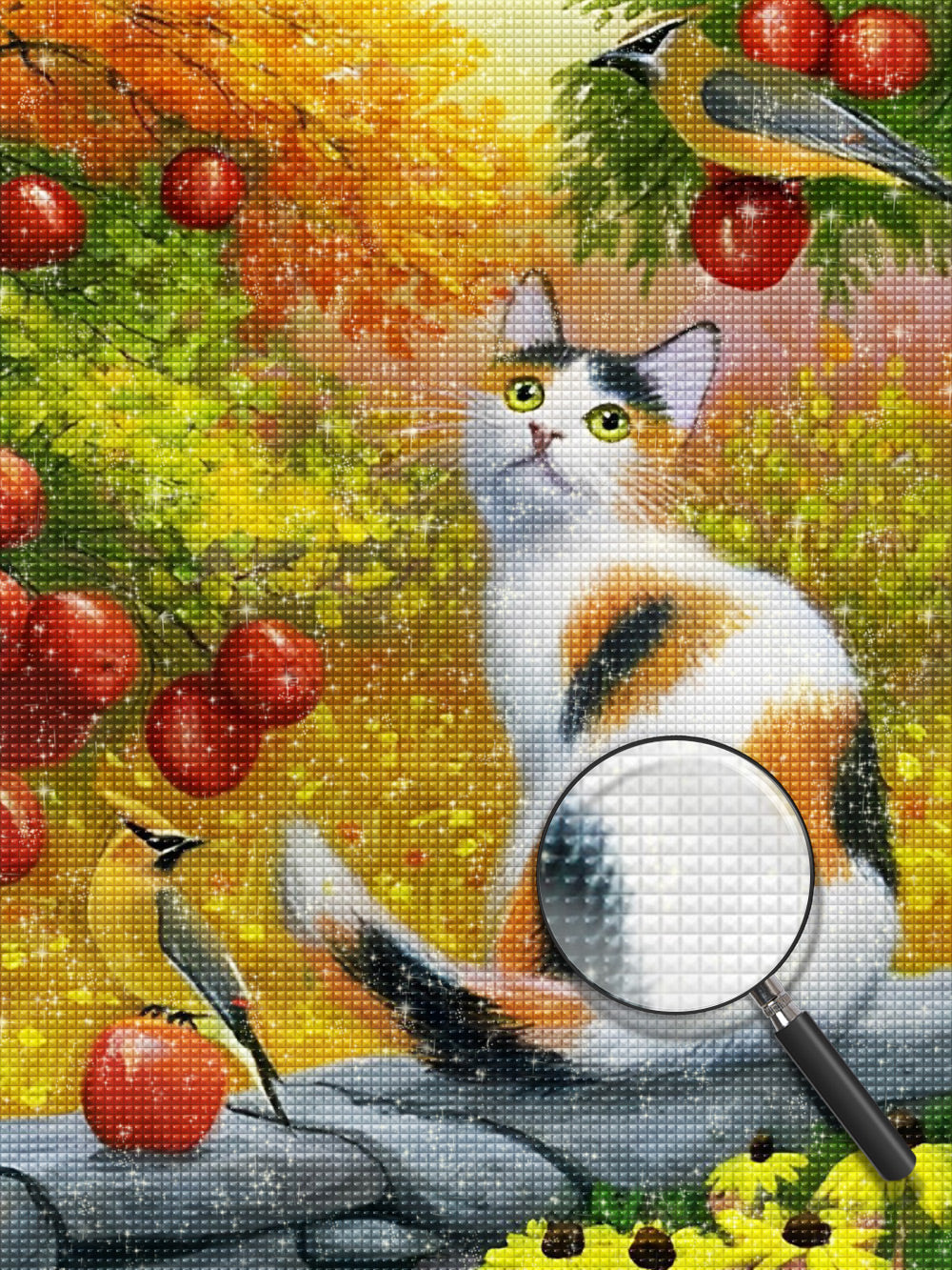 Tricolor Cat and Apples Diamond Painting