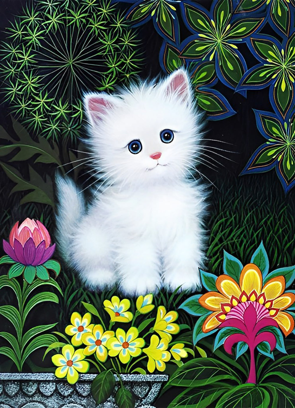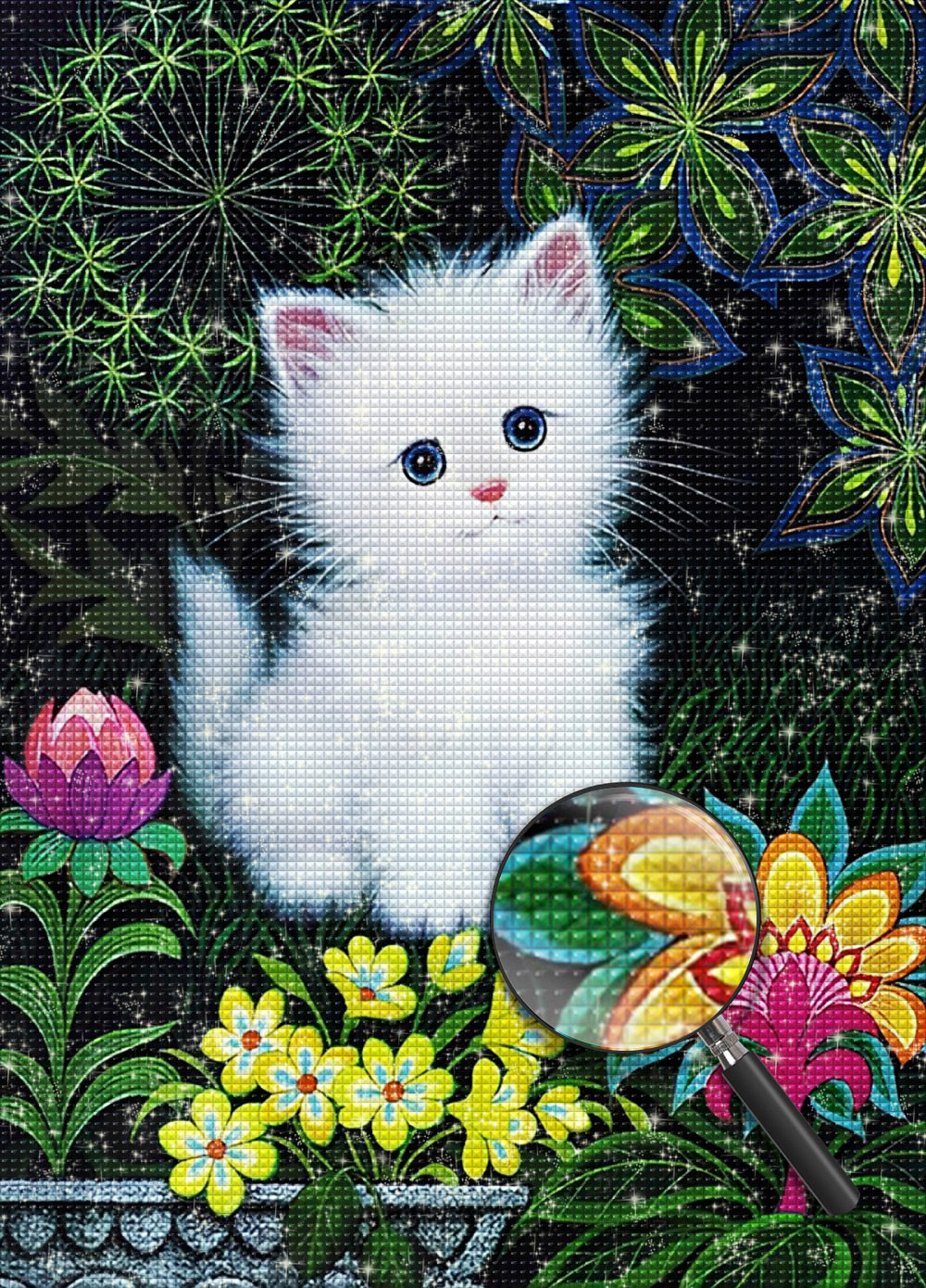 White Cat and Flowers Diamond Painting