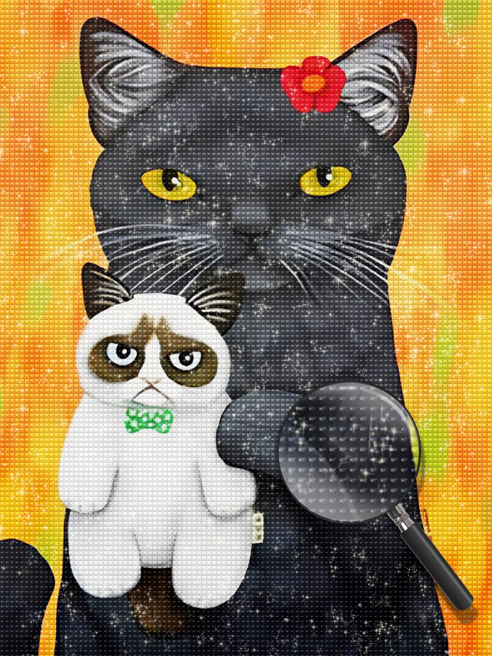 Black Cat and Puppet Siamese Cat Diamond Painting
