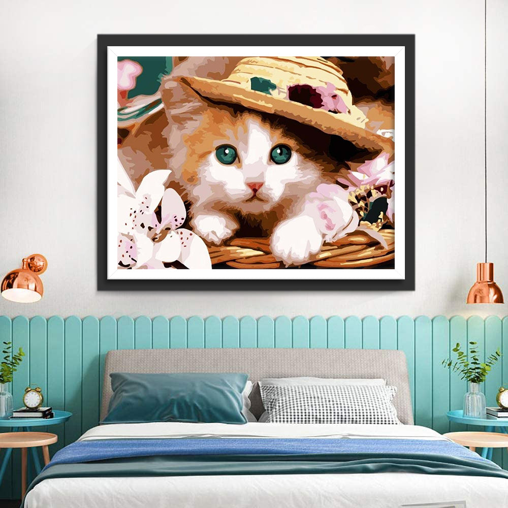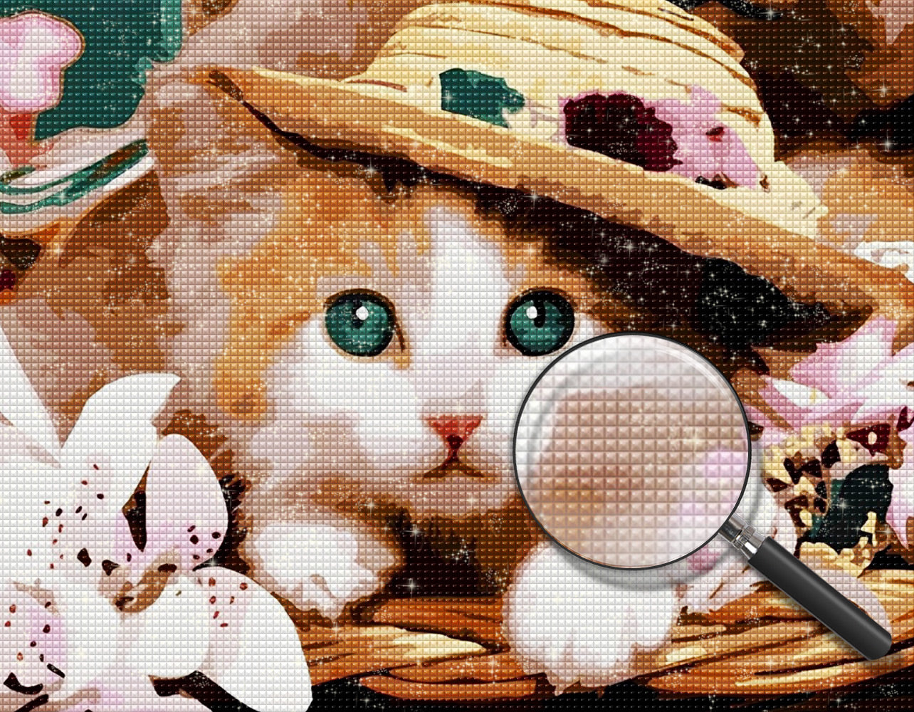 Cat in Straw Hat Diamond Painting