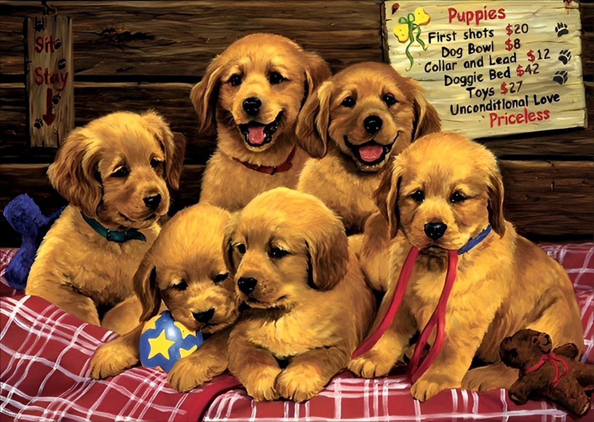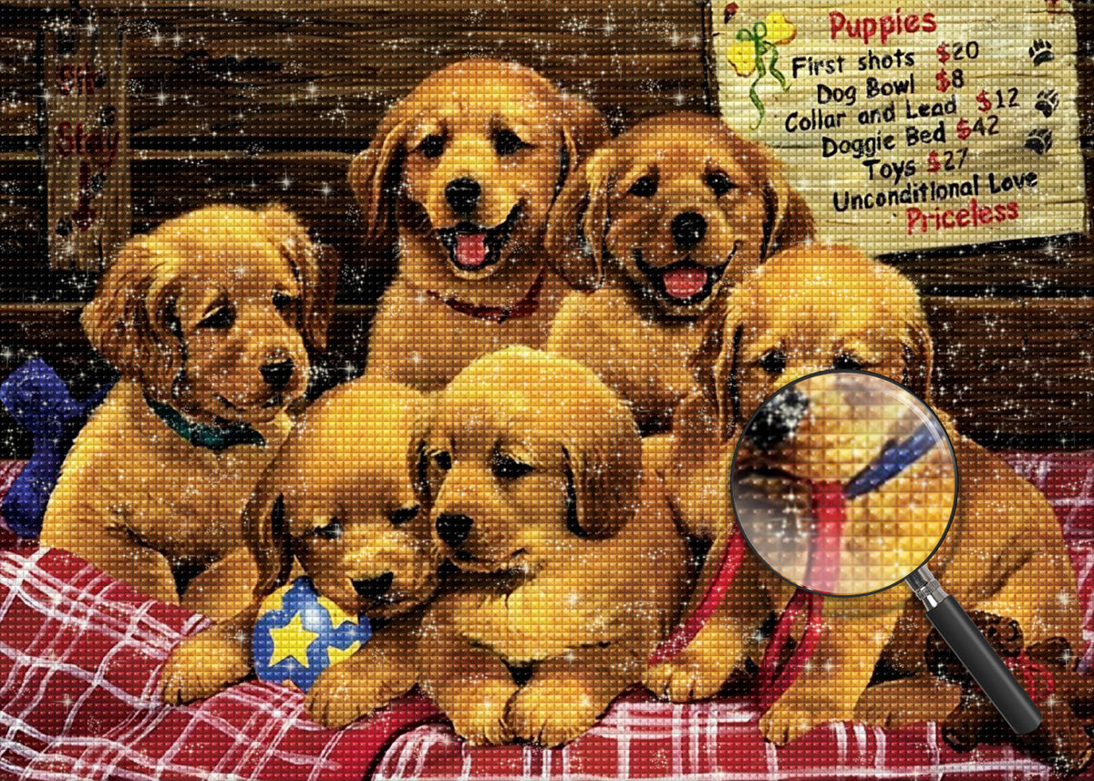 Six Chiots Golden Retriever Diamond Painting
