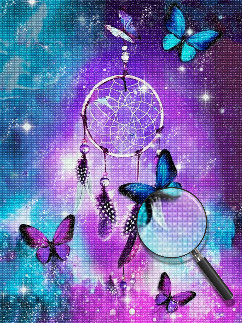 Purple and Blue Dream Catcher and Butterflies Diamond Painting