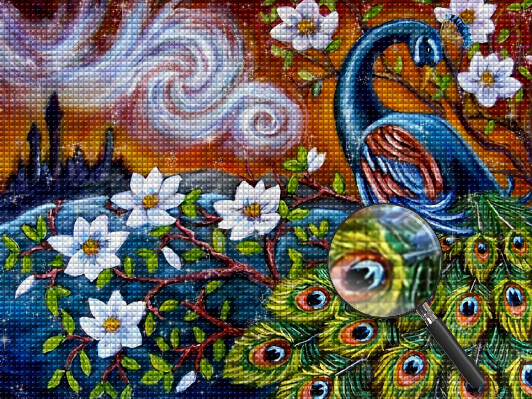 Blue Peacock and Castle Diamond Painting