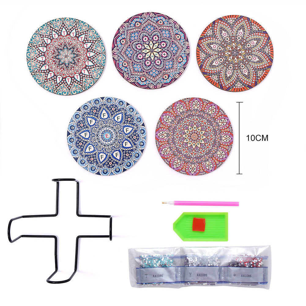 Round Mandala Diamond Painting Coasters 5Pcs