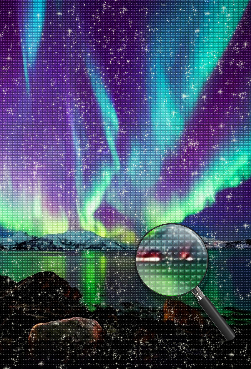 Starry Sky and Aurora Polar Green-Blue Diamond Painting