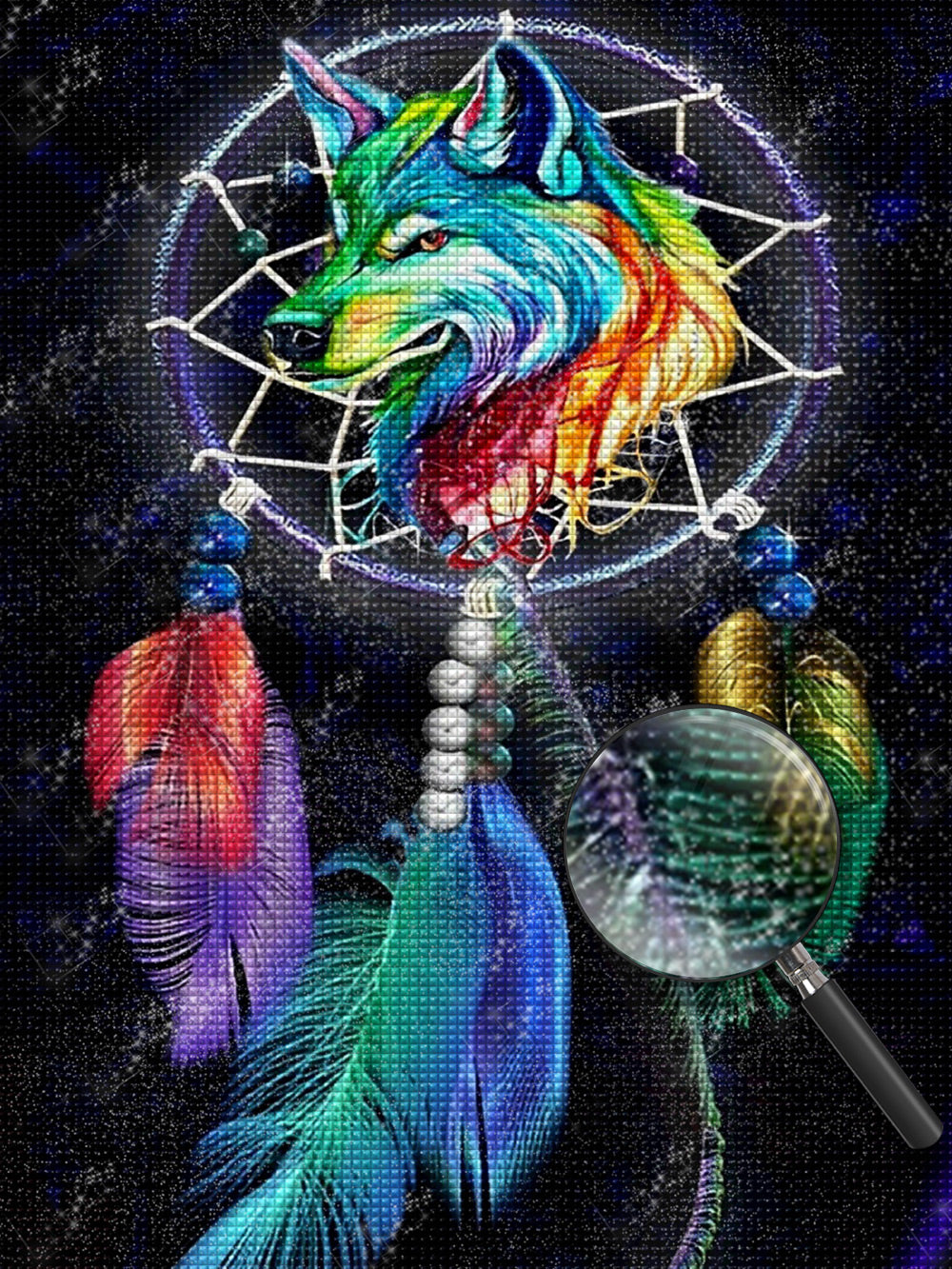 Colorful Wolf and Dreamcatcher Diamond Painting