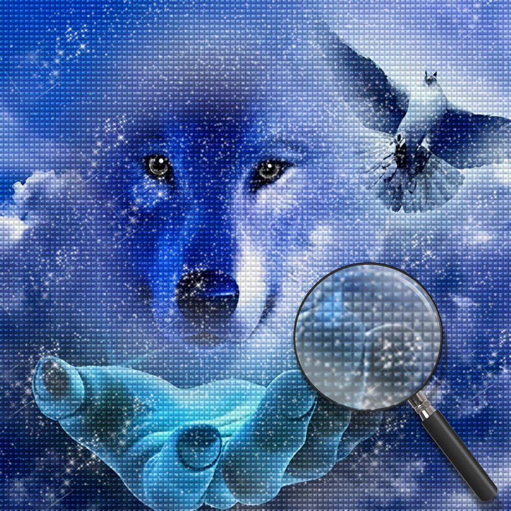 Blue wolf and pigeon Diamond Painting