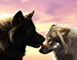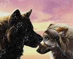 Black Wolf and Gray Wolf Licking Each Other Diamond Painting