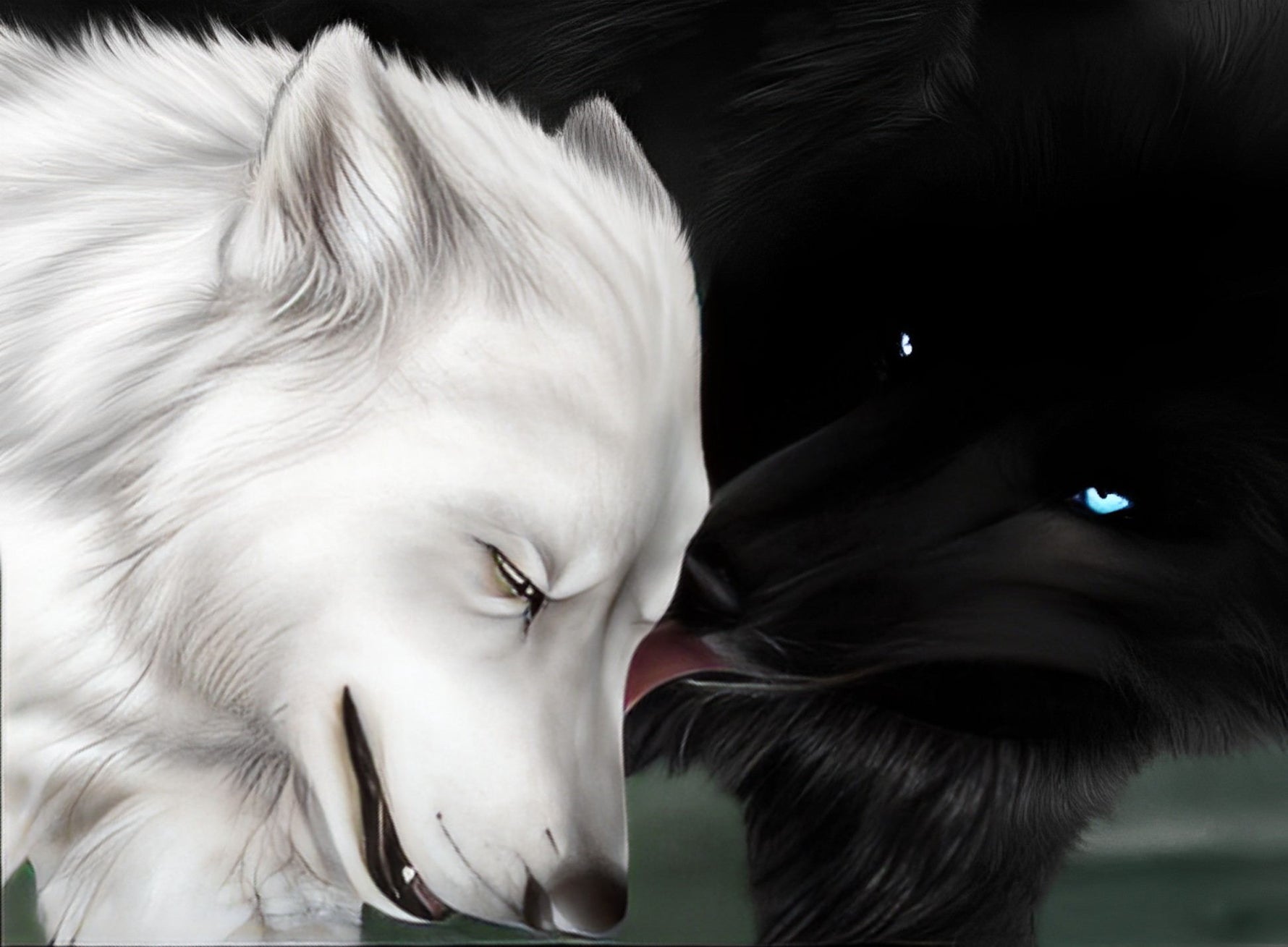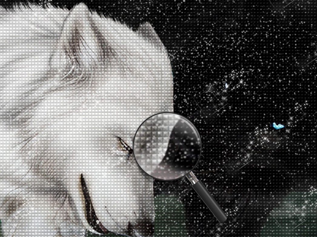 Black Wolf Licking White Wolf Diamond Painting