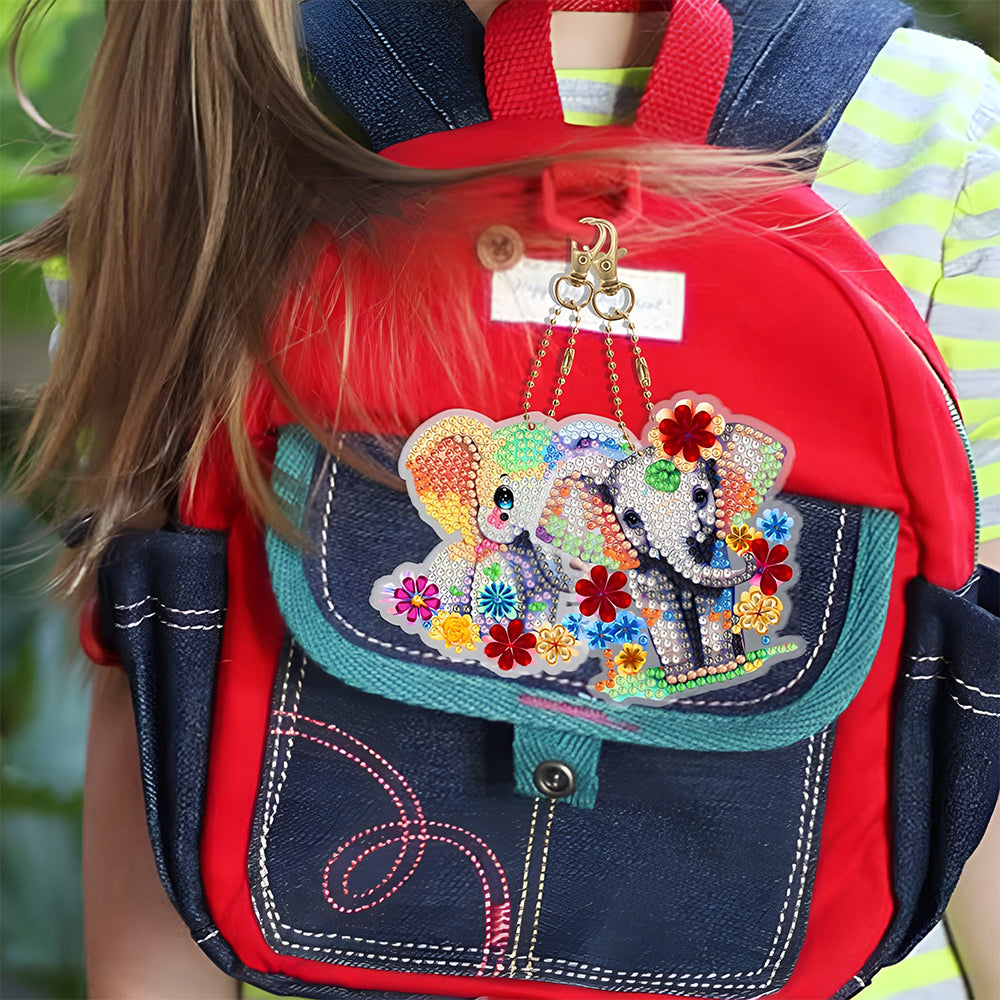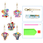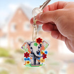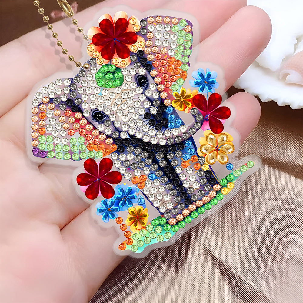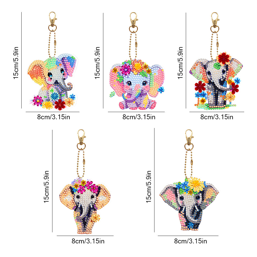 5Pcs Colorful Flower Elephant Acrylic Double Side Keychain Diamond Painting