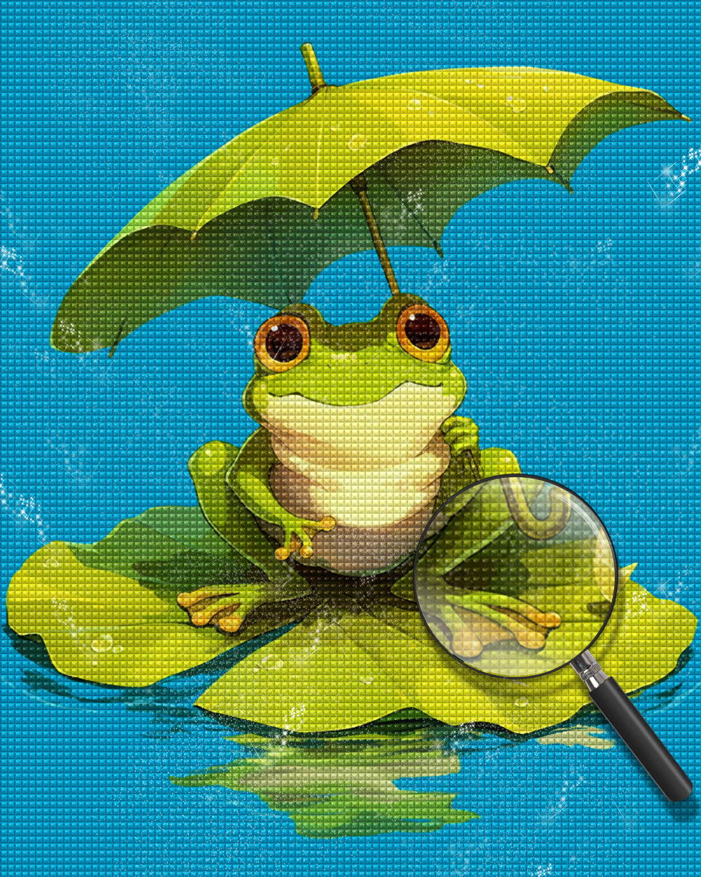 Frog with Lotus Leaf Umbrella Diamond Painting
