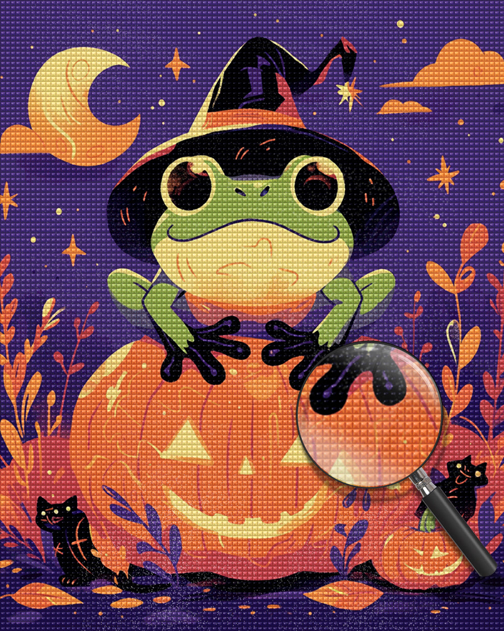 Halloween Frog and Pumpkin Lamp Diamond Painting