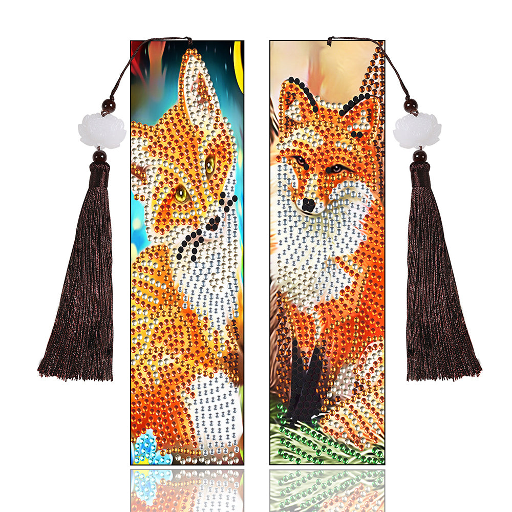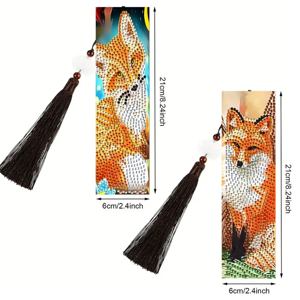 2Pcs Cute Fox Leather Bookmark Diamond Painting Kits
