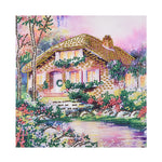 Yellow Garden Hut by the River Special Shaped Drills Diamond Painting