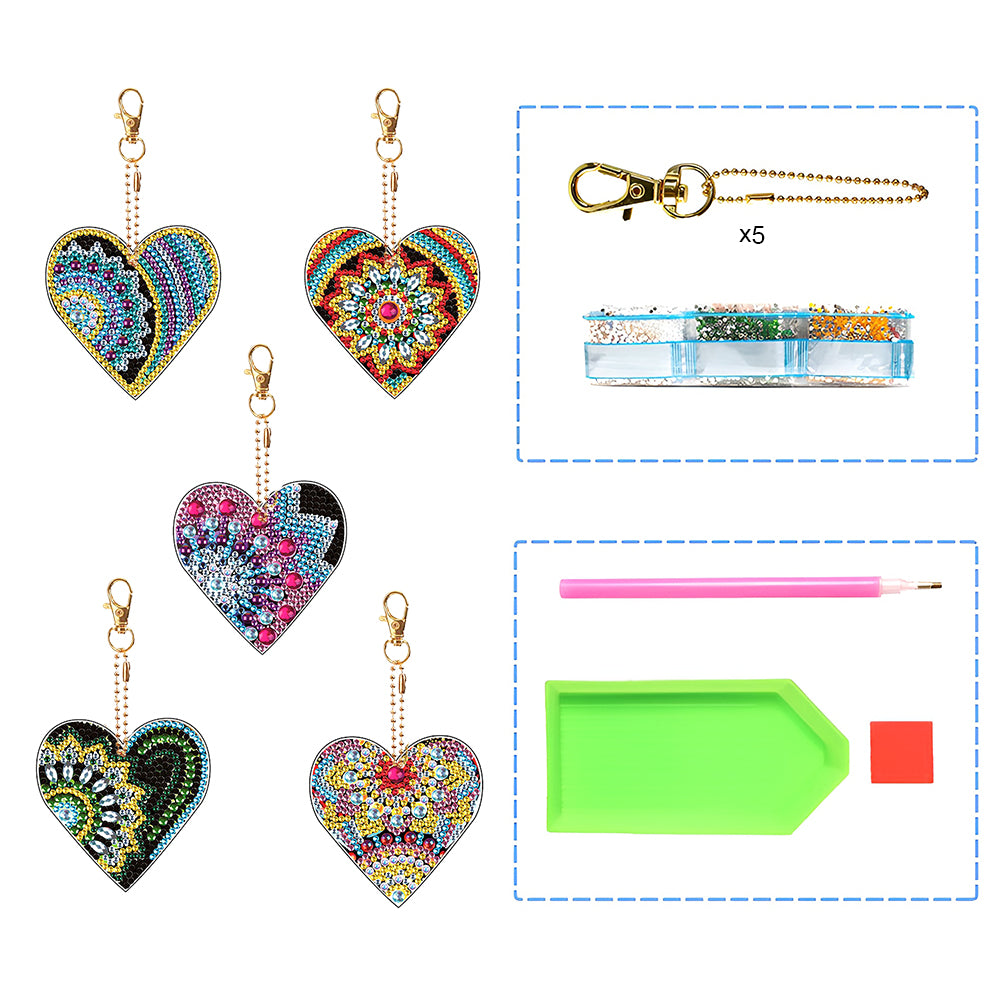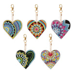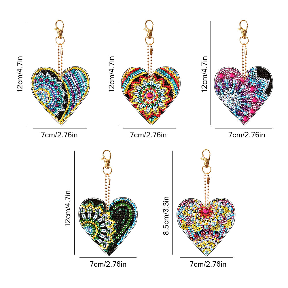 5Pcs Heart Mandala Acrylic Double Side Keychain Diamond Painting