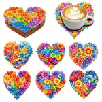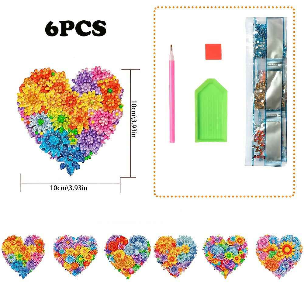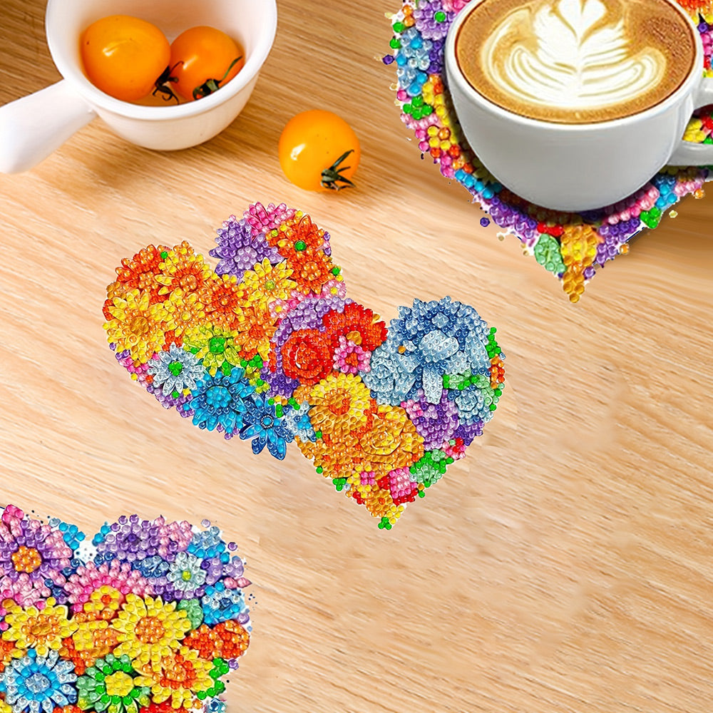 Colorful Heart Shaped Flowers Diamond Painting Coasters 6Pcs