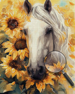 White Horse and Sunflowers Diamond Painting