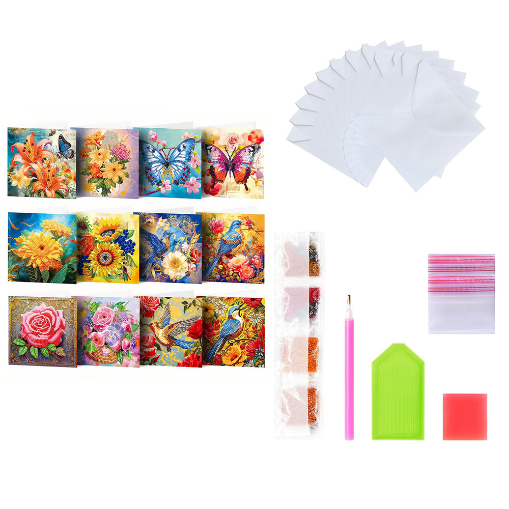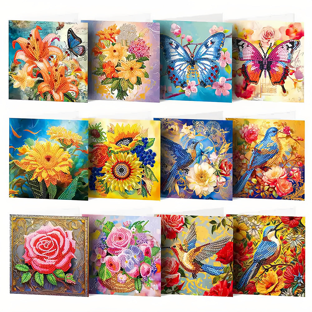 Butterflies, Birds and Flowers Greeting Cards | 12 Pieces