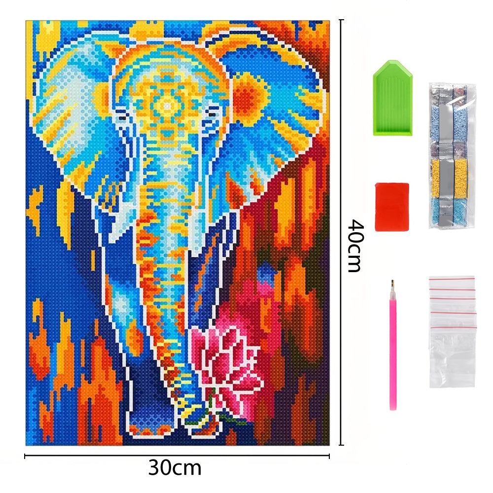 Elephant with Lotus Luminous Crystal Rhinestone Diamond Painting