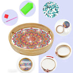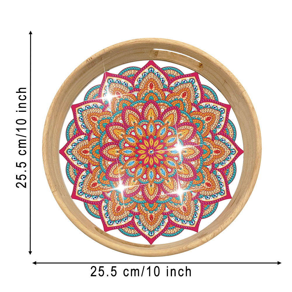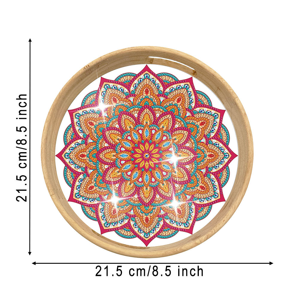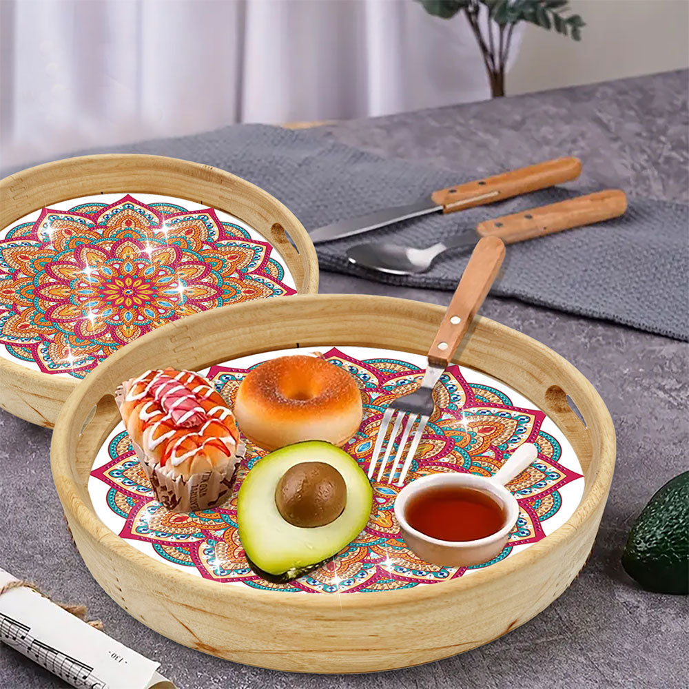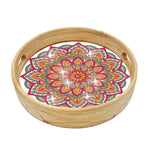 Orange and Red Mandala Round Wooden Serving Tray Diamond Painting