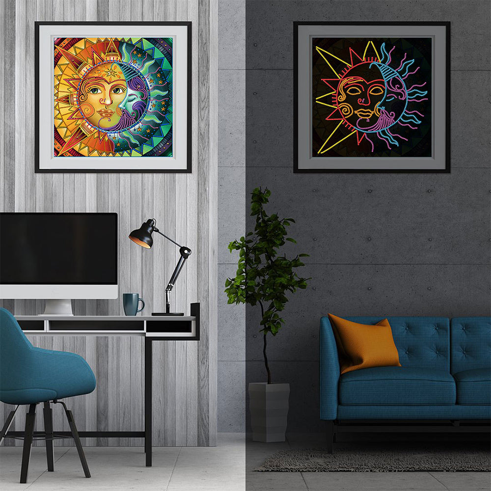 Abstract Sun and Moon Colored Luminous Special Shaped Diamond Painting