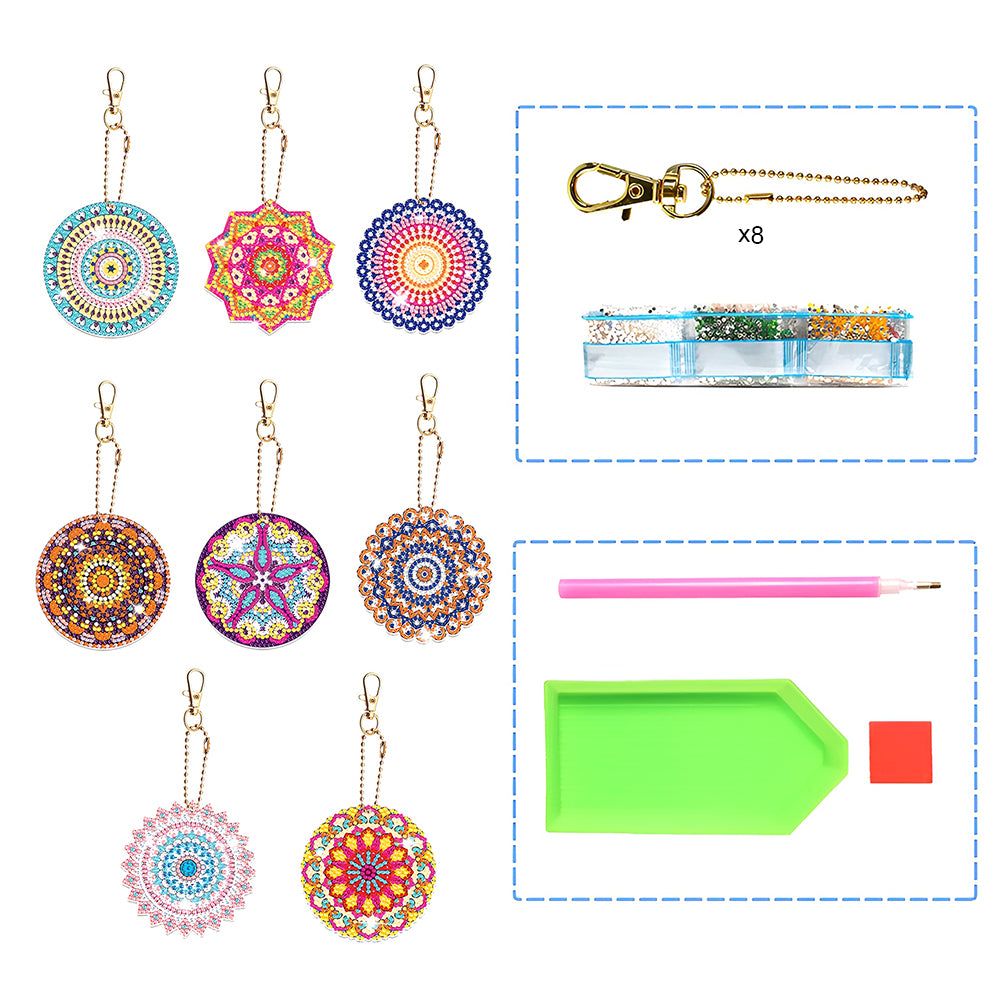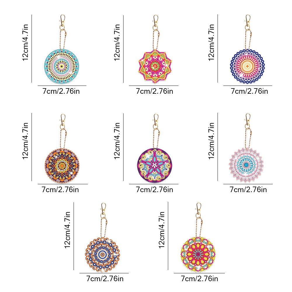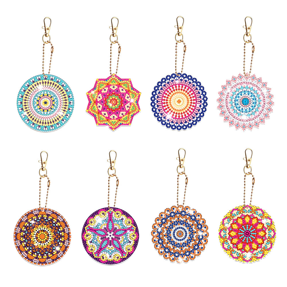 8Pcs Gorgeous Colorful Mandala Acrylic Double Side Keychain Diamond Painting