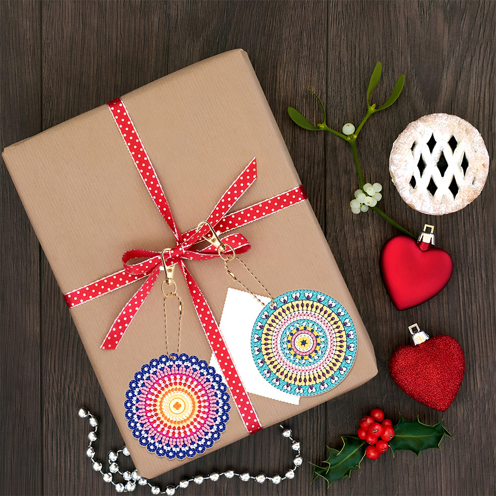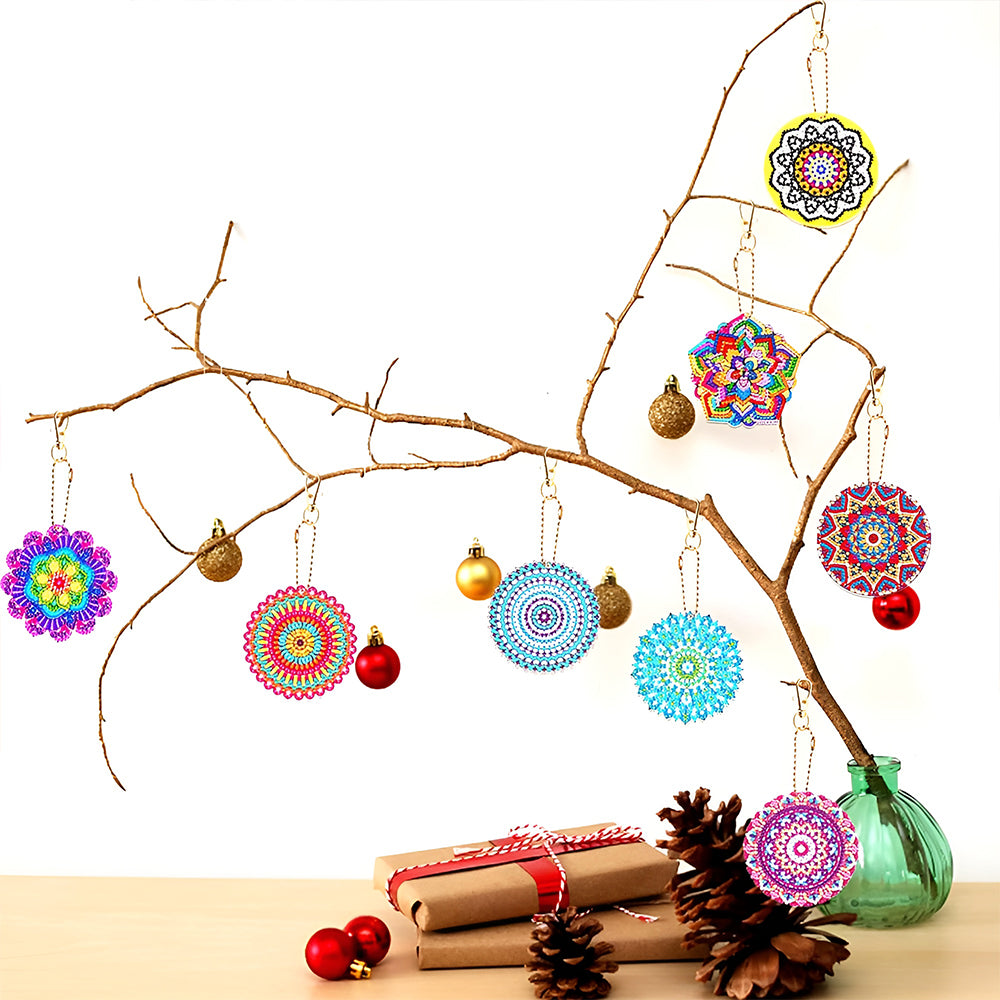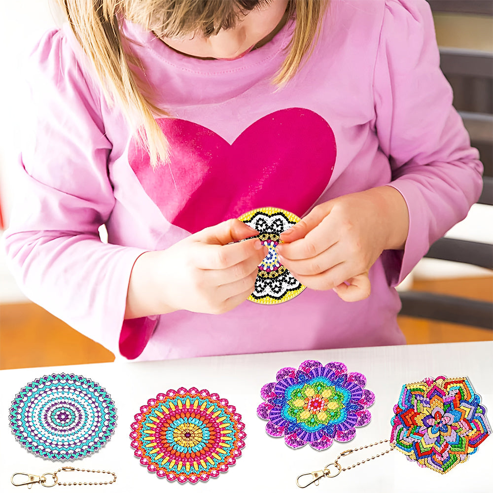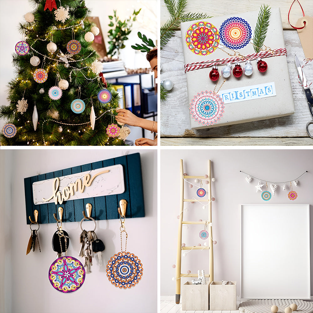 8Pcs Gorgeous Colorful Mandala Acrylic Double Side Keychain Diamond Painting