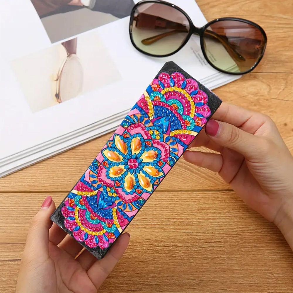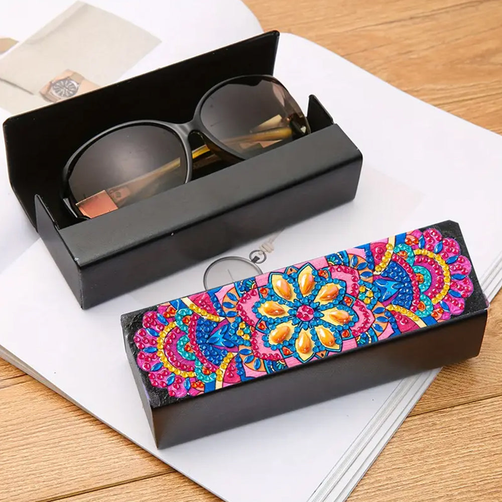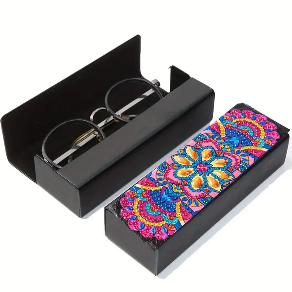Red and Blue Mandala Leather Glasses Storage Case Diamond Painting Kits STOBOX340