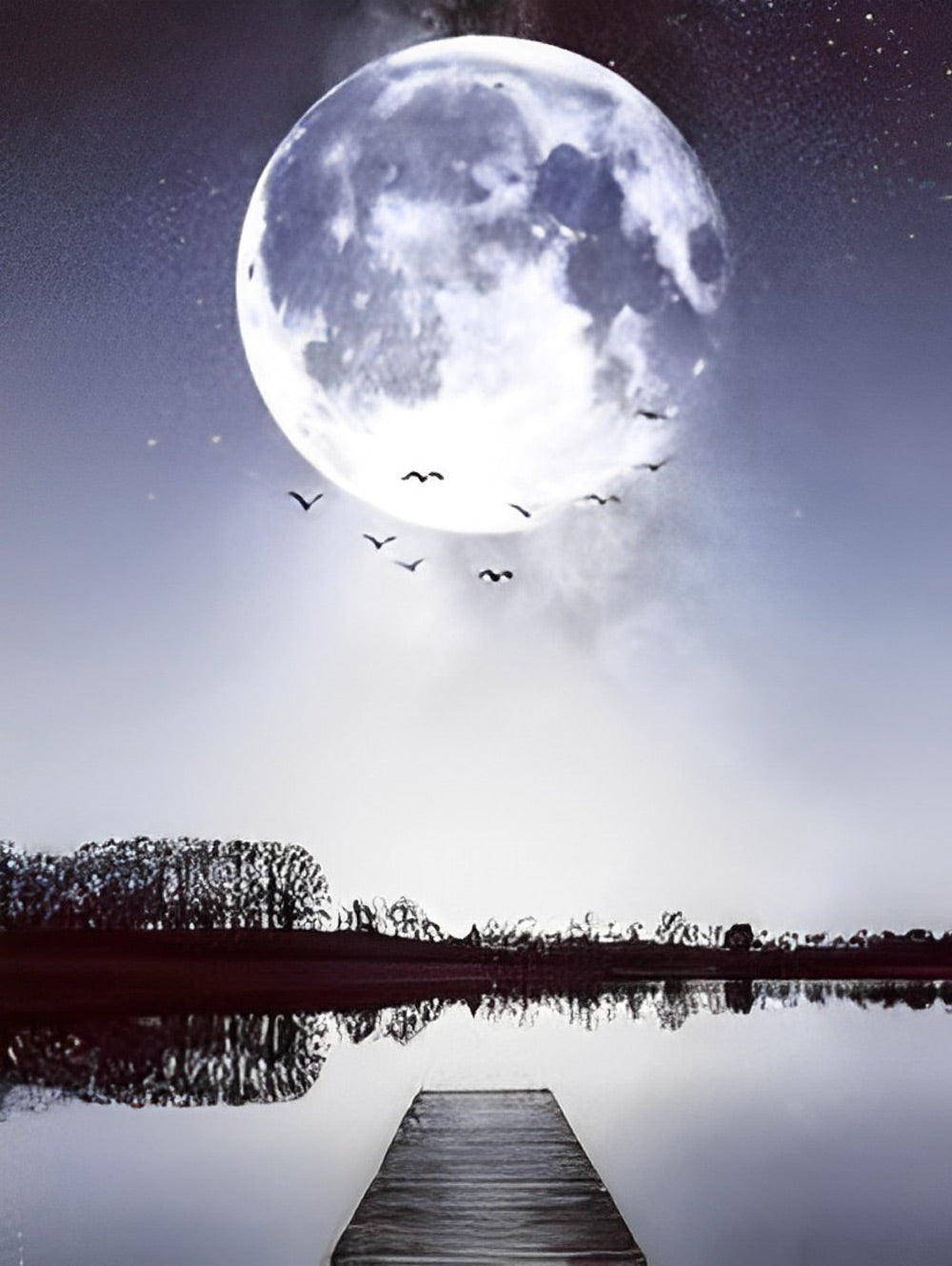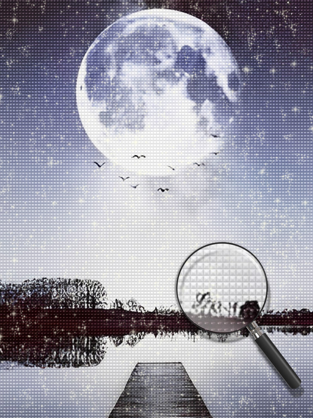 Birds in Groups and the Moon Diamond Painting