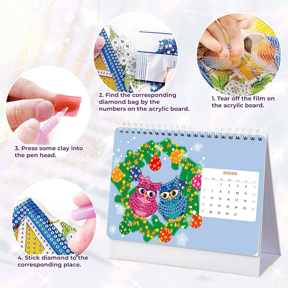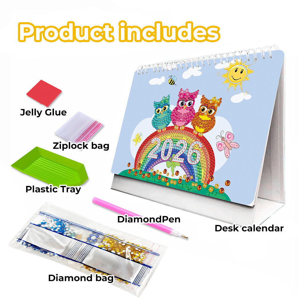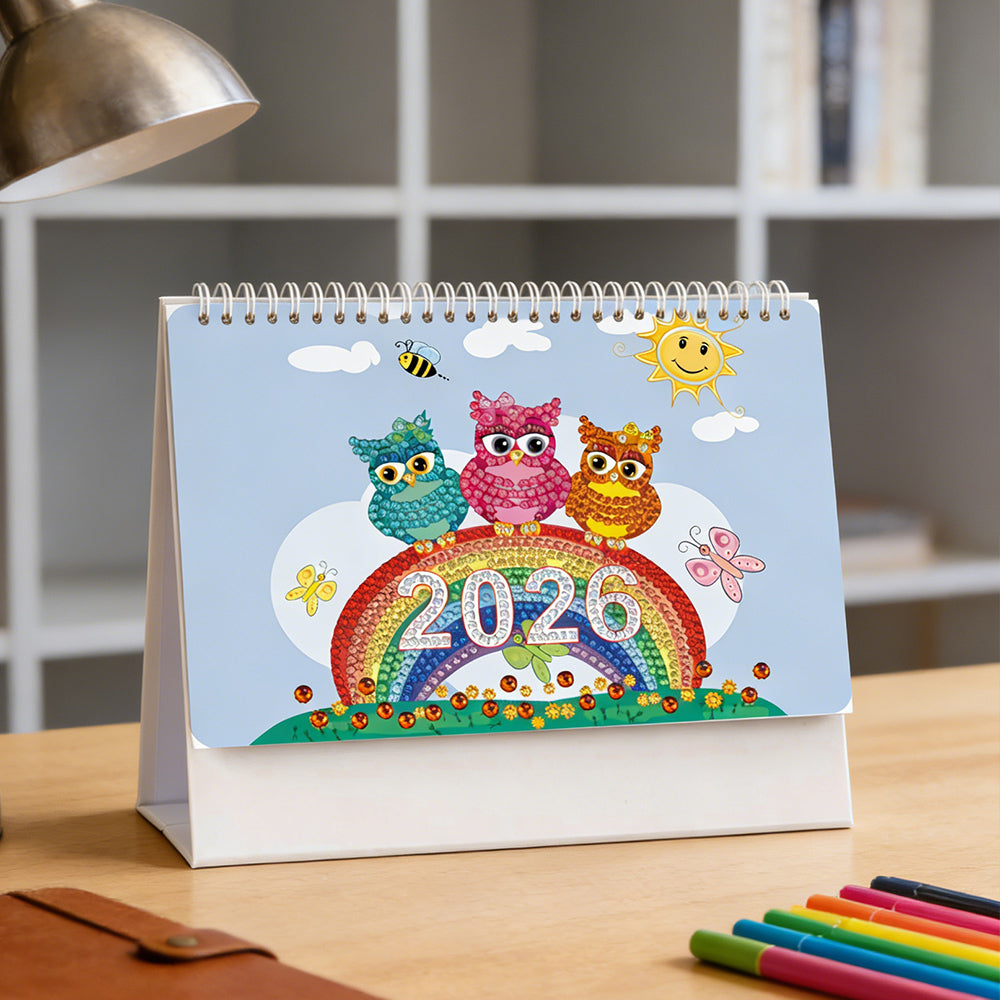 2026 Desk Calendar Diamond Painting | Happy and Colorful Owls