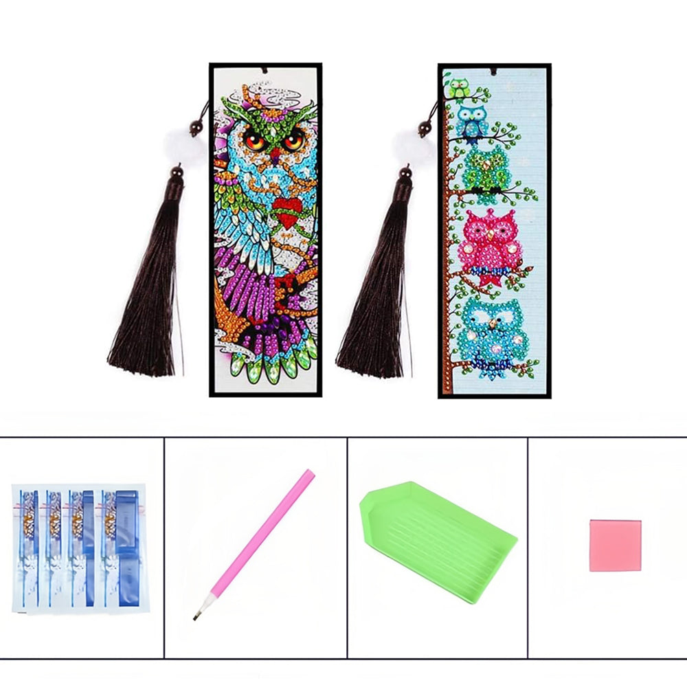 2Pcs Owl's Family Leather Bookmark Diamond Painting Kits