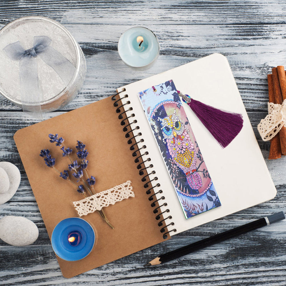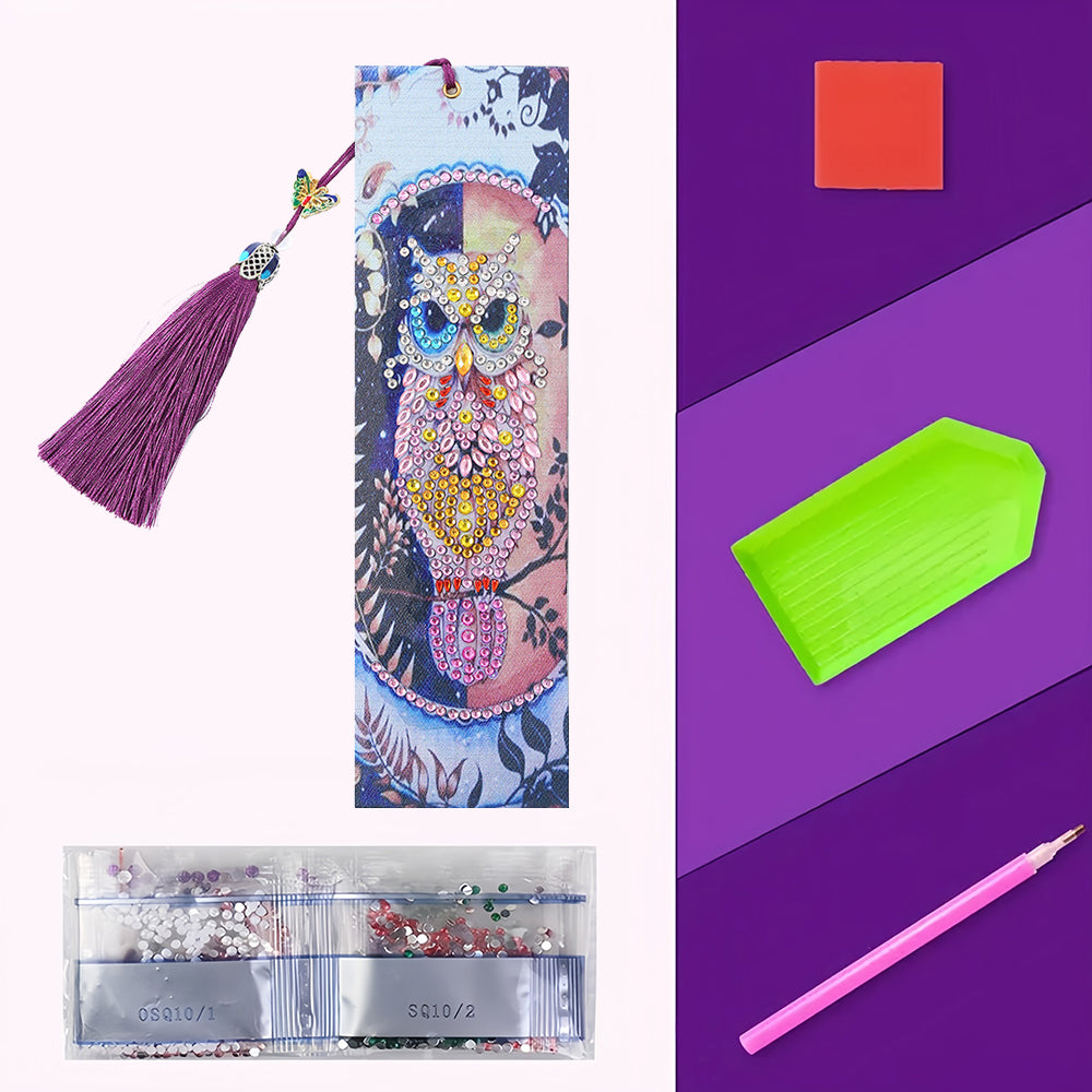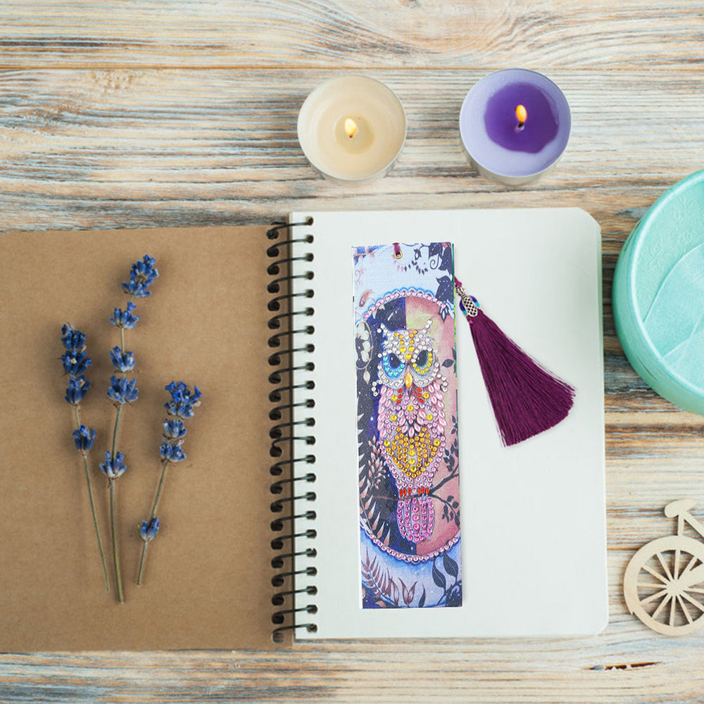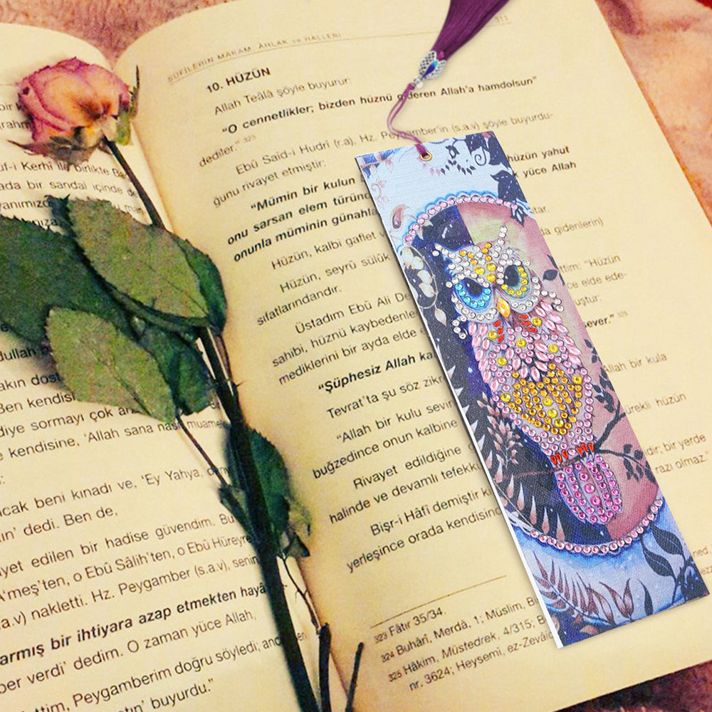 Beautiful Pink Owl Leather Bookmark Diamond Painting Kits