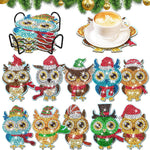 Festive Dressed Owl Diamond Painting Coasters 10Pcs
