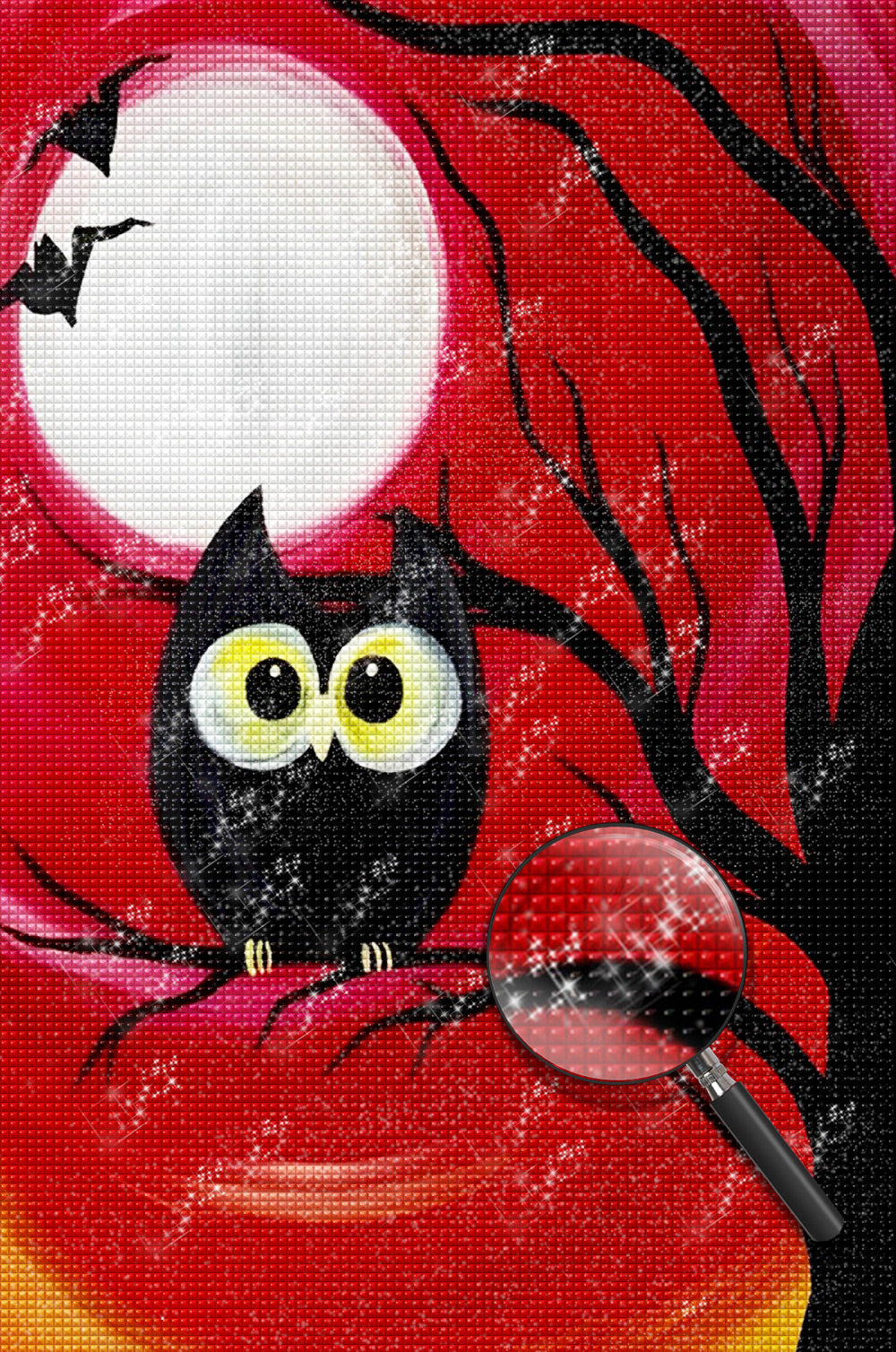 Cartoon Black Owl on a Dead Tree Diamond Painting