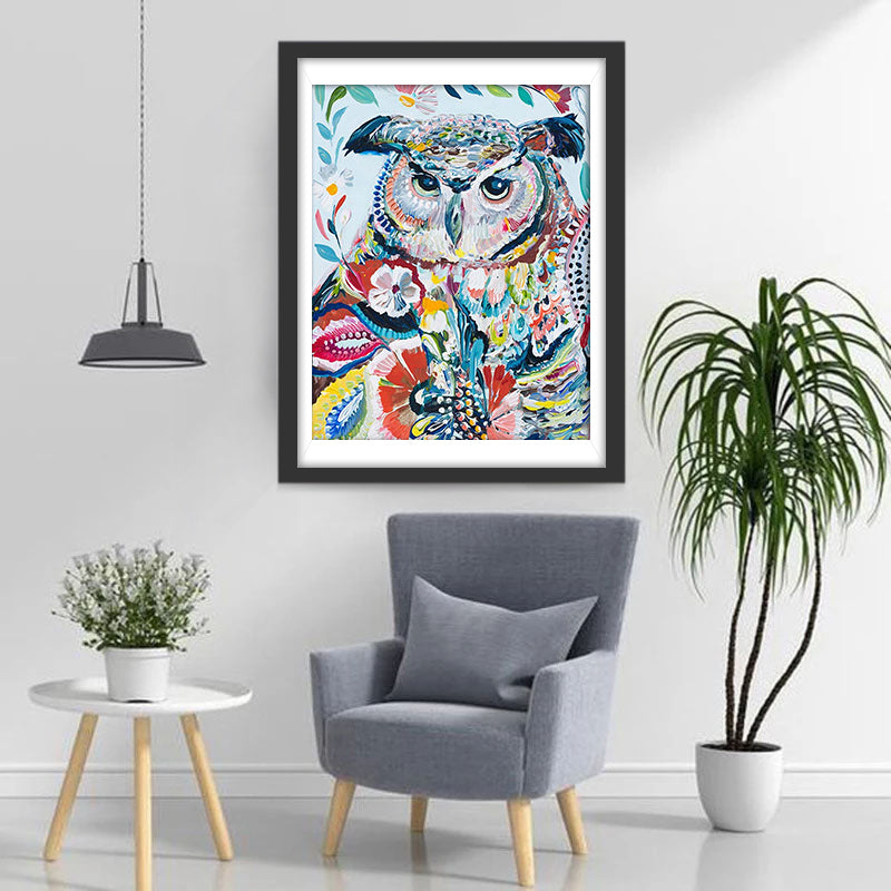 Owl Serious Drawn Diamond Painting