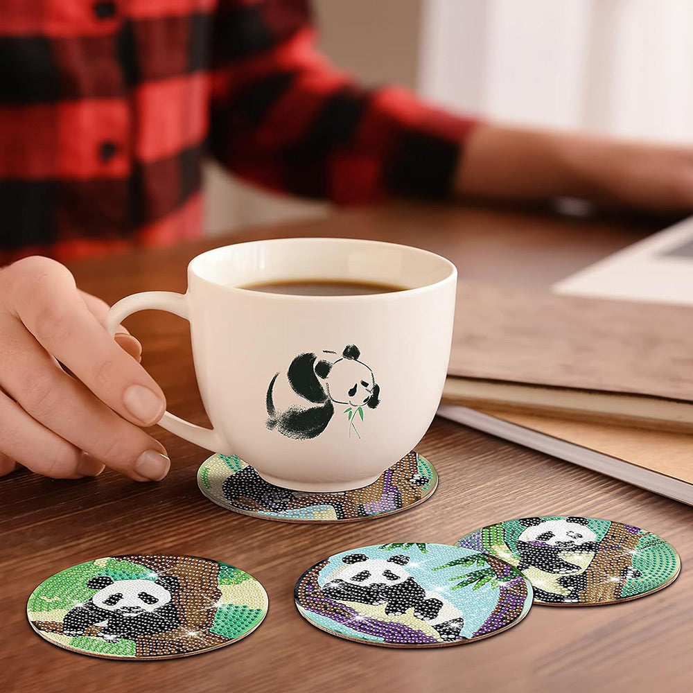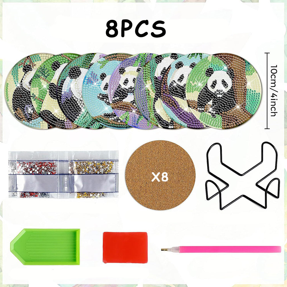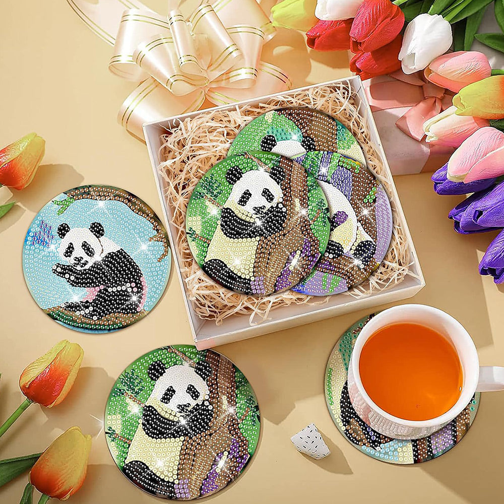 Panda Diamond Painting Coasters 8Pcs