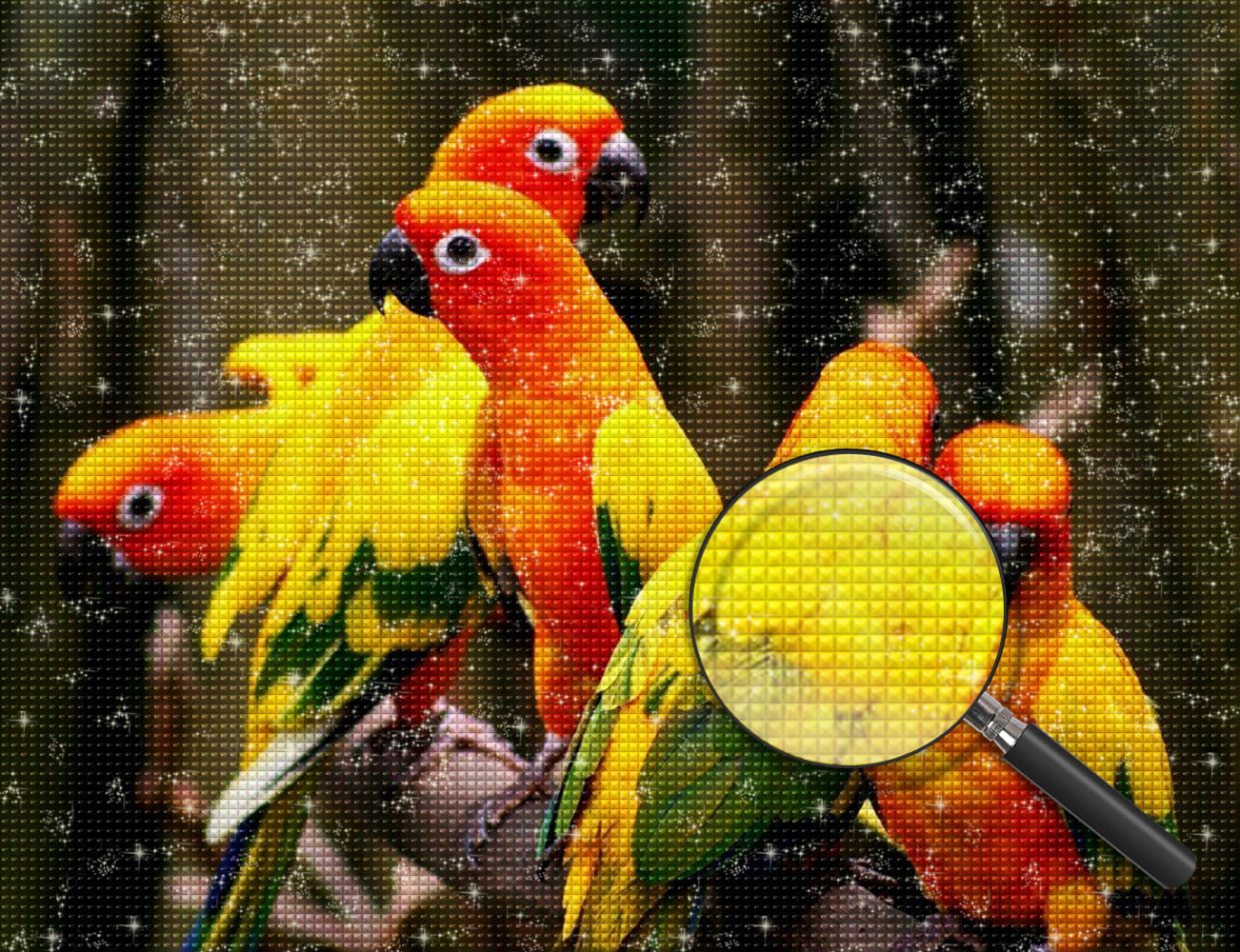 Five Parrots in Red, Yellow and Green Colors Diamond Painting