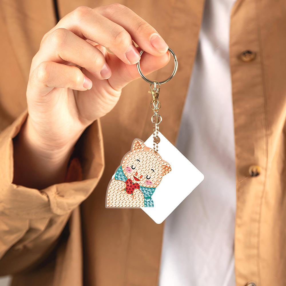 5Pcs Funny Baby Animals Acrylic Double Side Keychain Diamond Painting