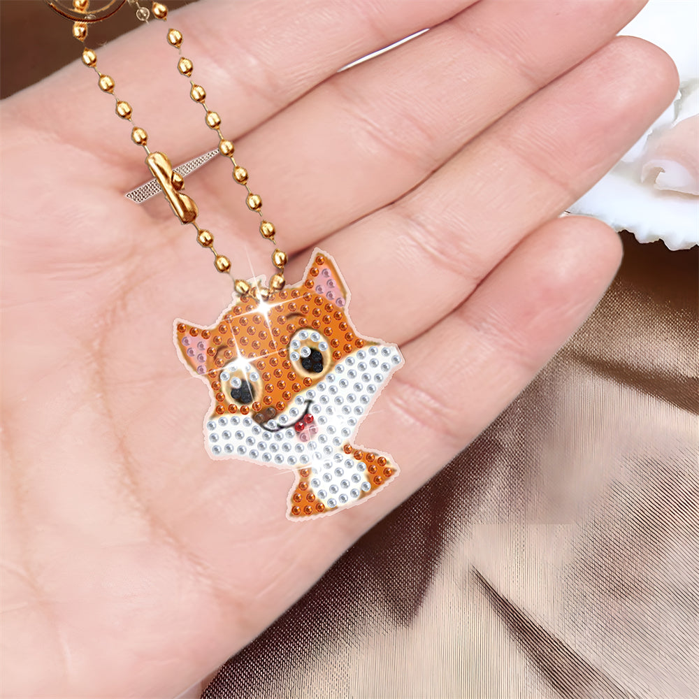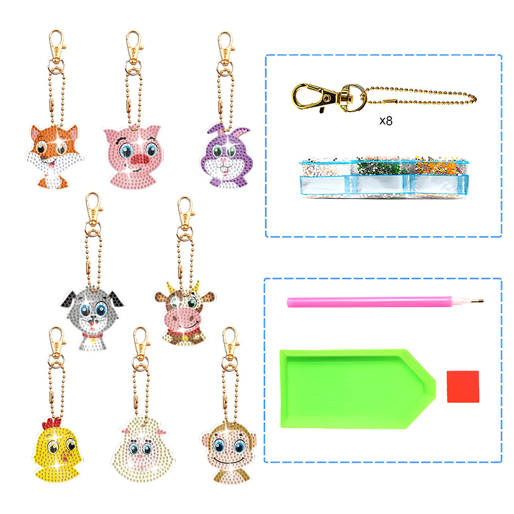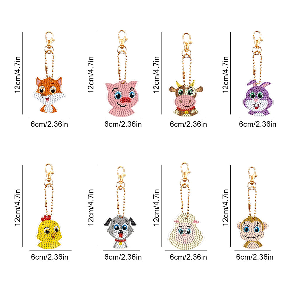 8Pcs Happy Animals Acrylic Double Side Keychain Diamond Painting