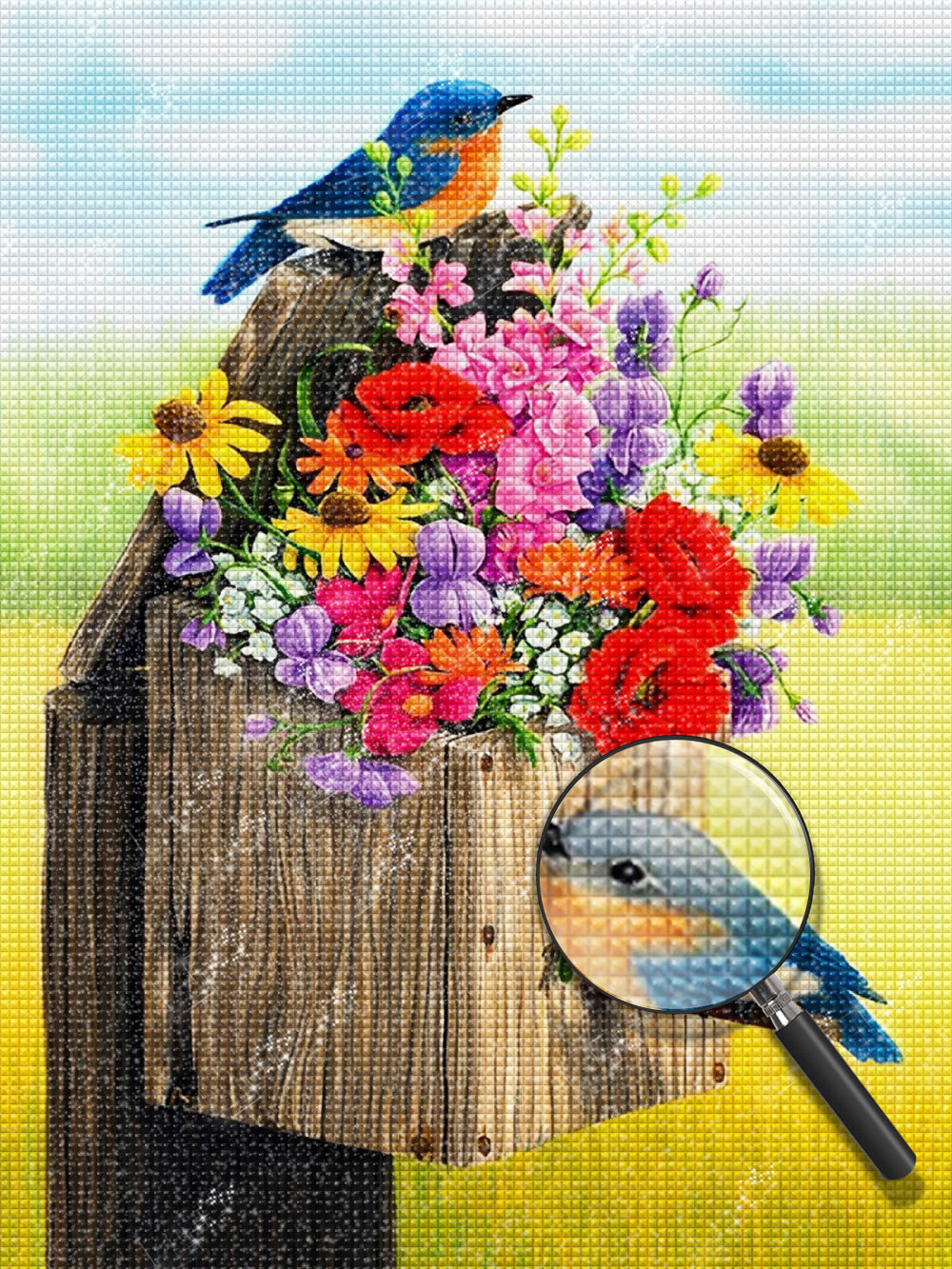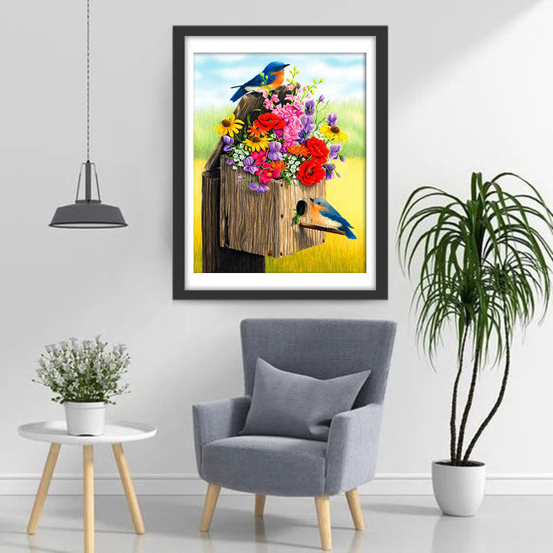 Birds and Their Nest with Flowers Diamond Painting