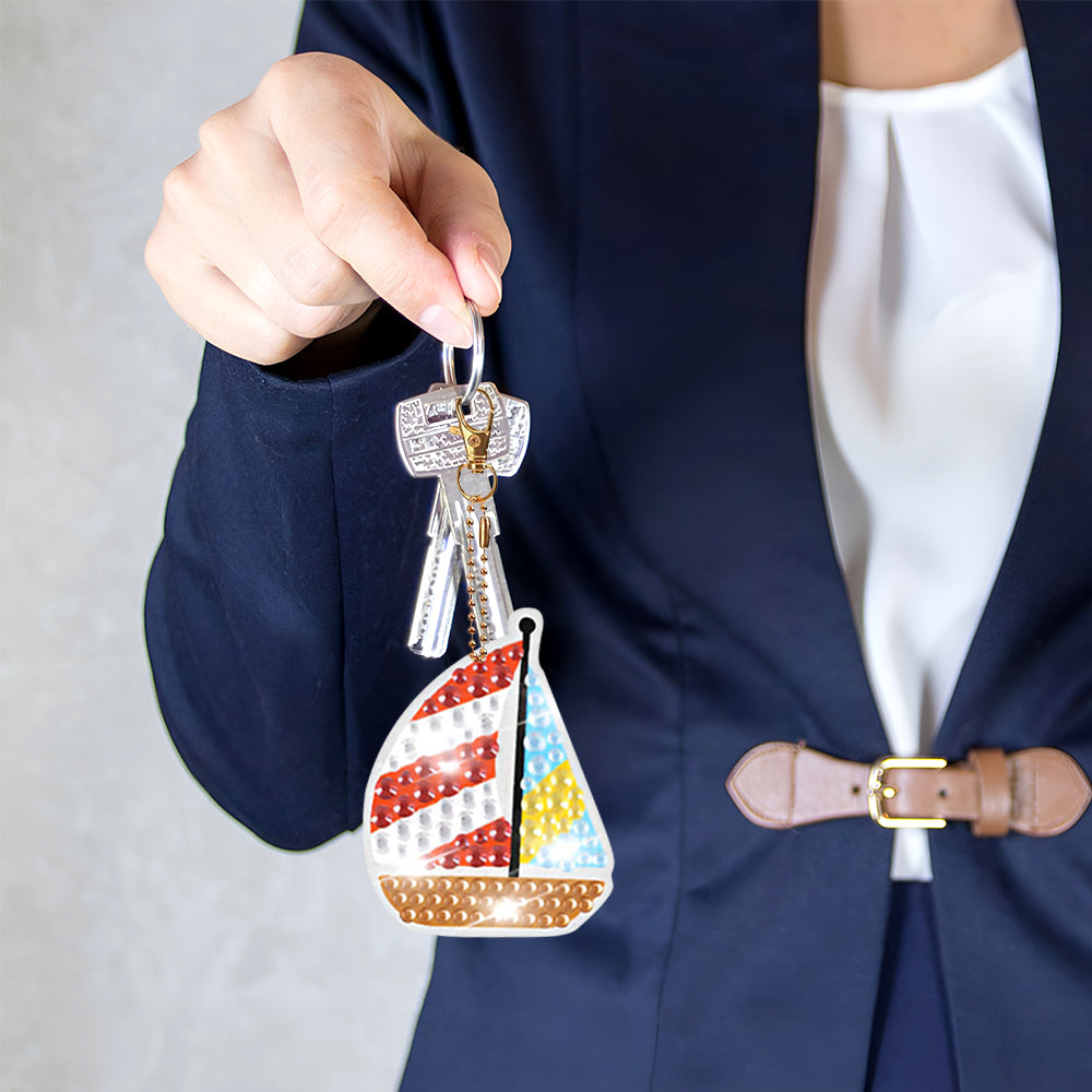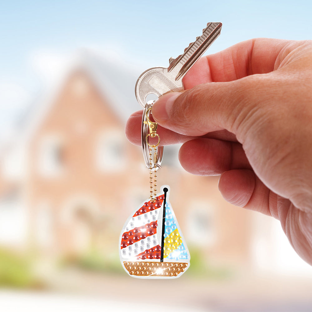 5Pcs Cute Sea Animals Acrylic One Side Keychain Diamond Painting