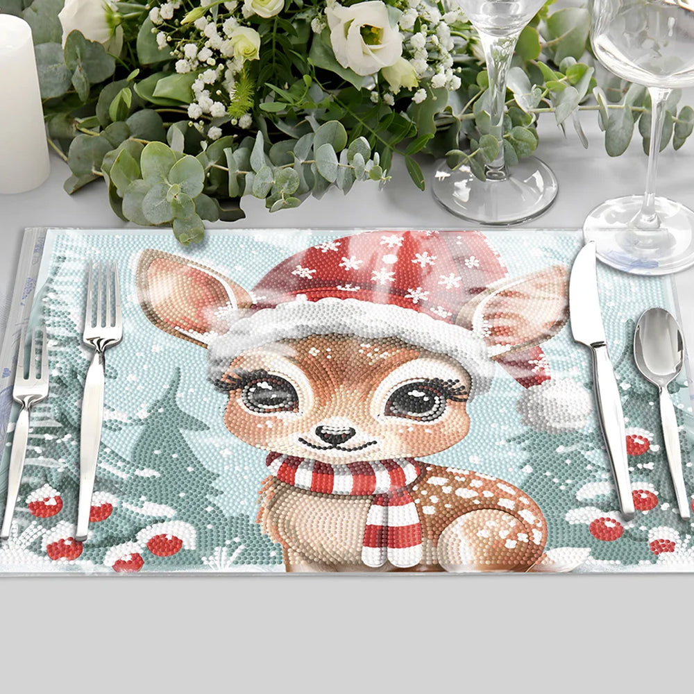 Cute Christmas Deer Table Placemats for Home Decor Diamond Painting